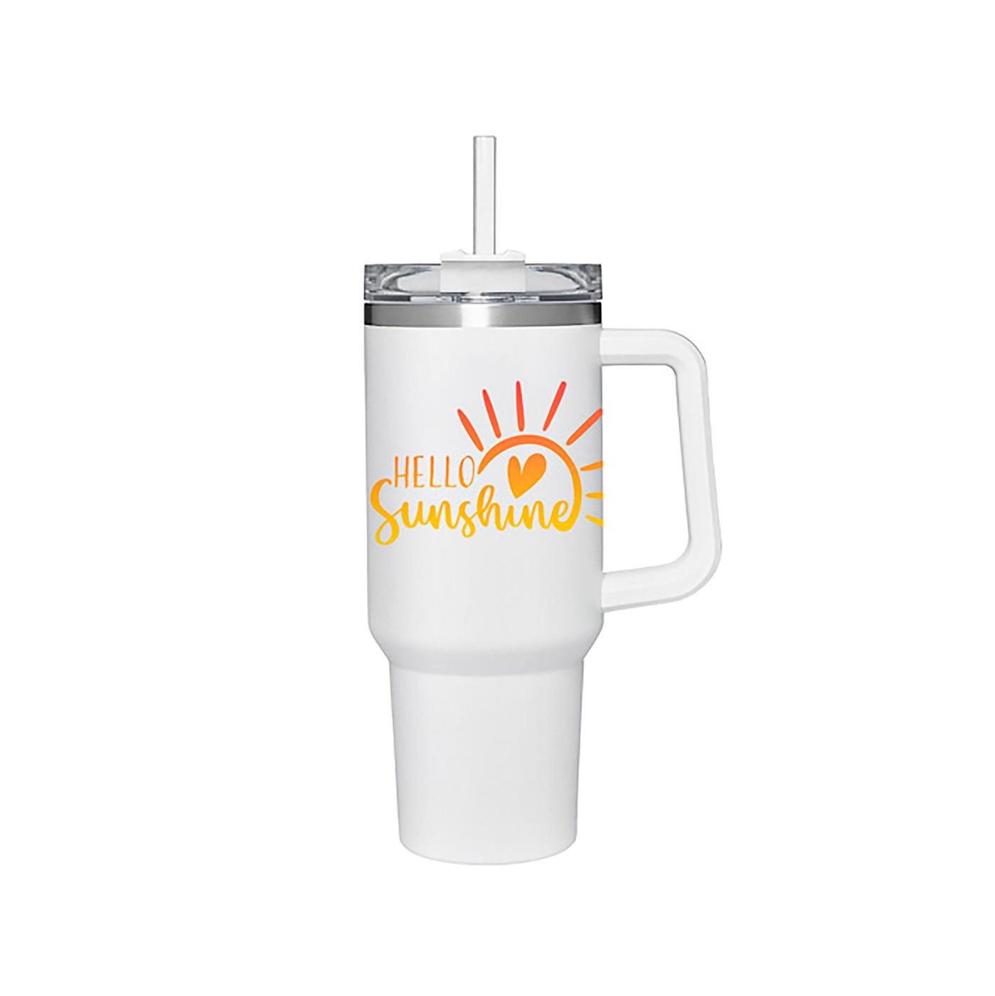 Cestovní hrnky do kuchyně a zábavy | Hrnek Plow & Hearth Hello Sunshine Canyon, dvoustěnný z nerezové oceli s brčkem, 122 g, dárková krabička