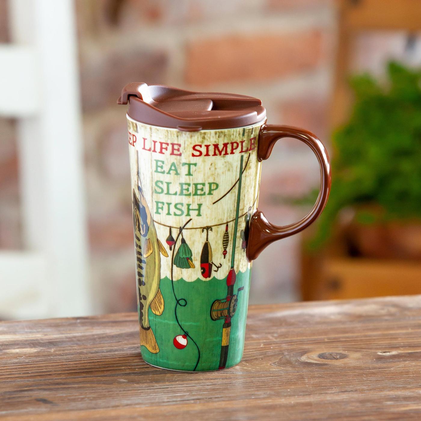 Cestovní hrnky do kuchyně a zábavy | Keramický cestovní hrnek Plow & Hearth, 17 oz., Keep Life Simple