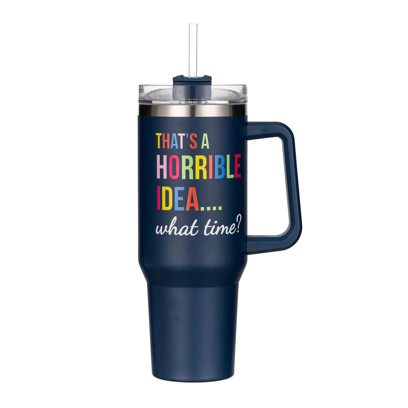 Cestovní hrnky do kuchyně a zábavy | Pluh a krb That's A Horrible Idea, hrnek Canyon, dvoustěnná nerezová ocel s brčkem, 40 oz, dárková krabička