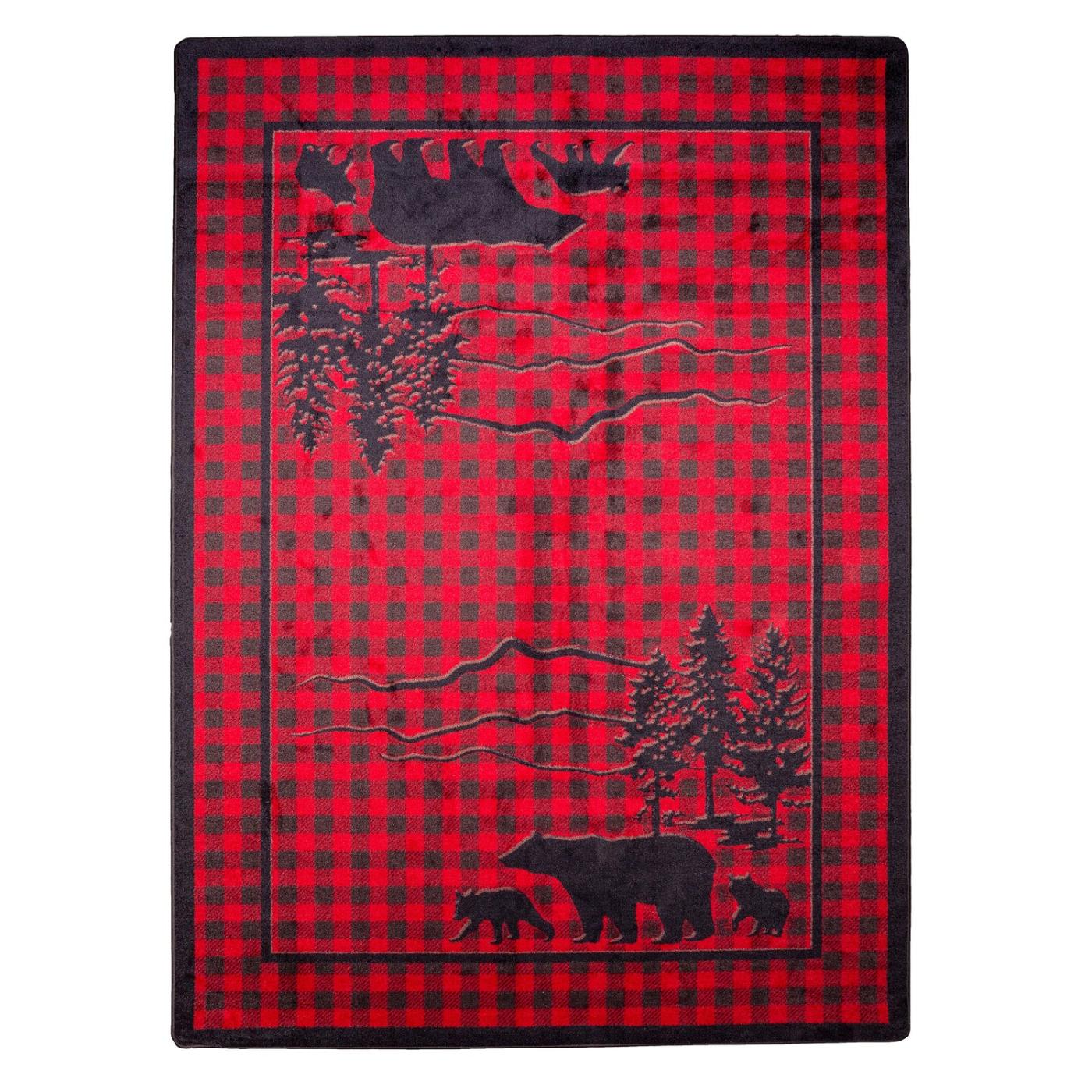 Klasický buffalo check dostává nový vzhled s medvědí rodinkou procházející se mezi borovicemi. Tónovaná vlákna a poutavý design vnesou styl do každého prostoru, od obývacího pokoje až po hernu.