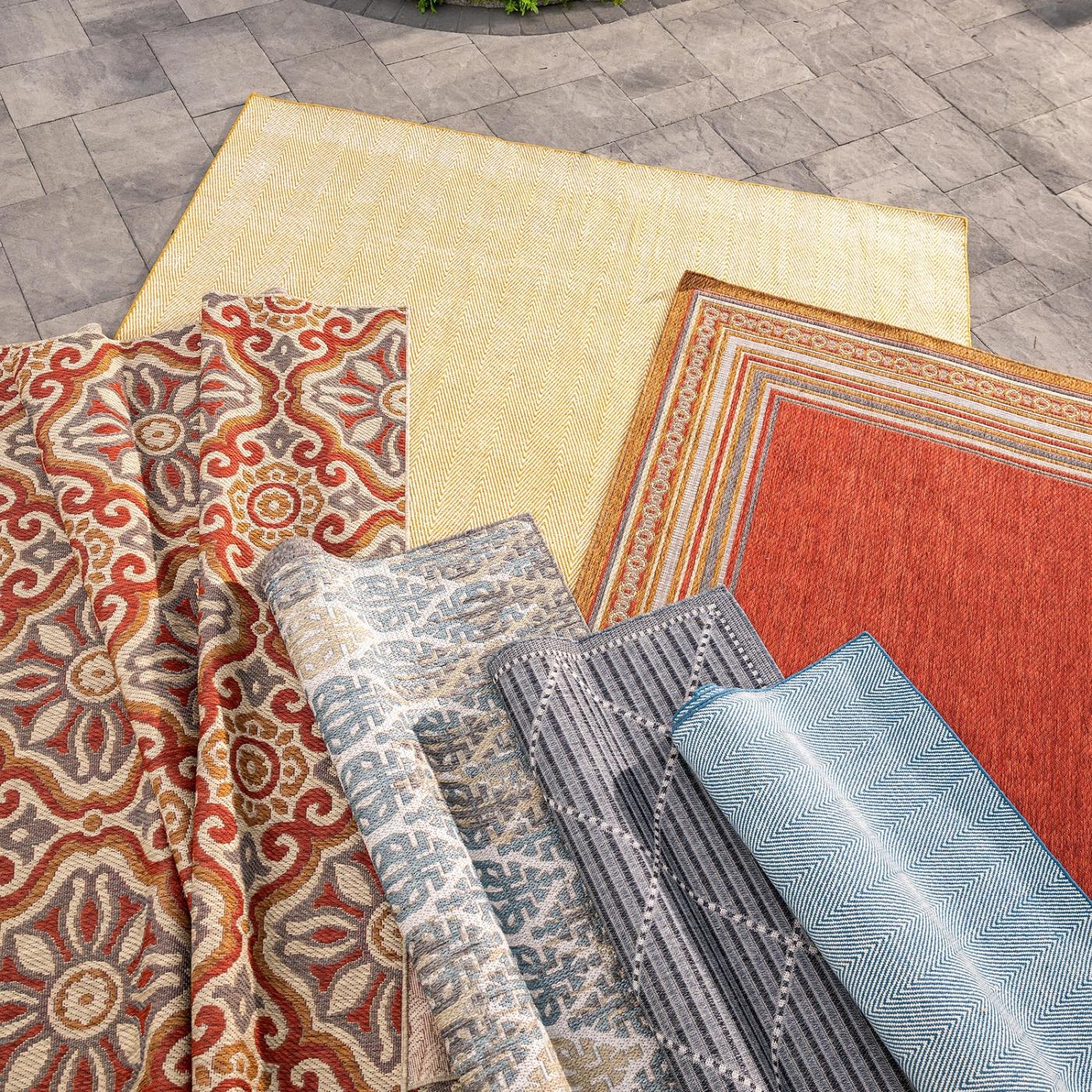 Pevná a odolná konstrukce s UV ochranou zajišťuje, že koberec nevybledne, nehnije ani se netvoří plíseň a můžete si ho užívat rok co rok. Klasická plochá vazba odolává povětrnostním vlivům, domácím mazlíčkům, dětem, místům s vysokou frekvencí pohybu a dalším vlivům. Je odolný vůči skvrnám a vyblednutí, má nízkou výšku vlasu ≈ 18 mm. a snadno se o něj pečuje a čistí.