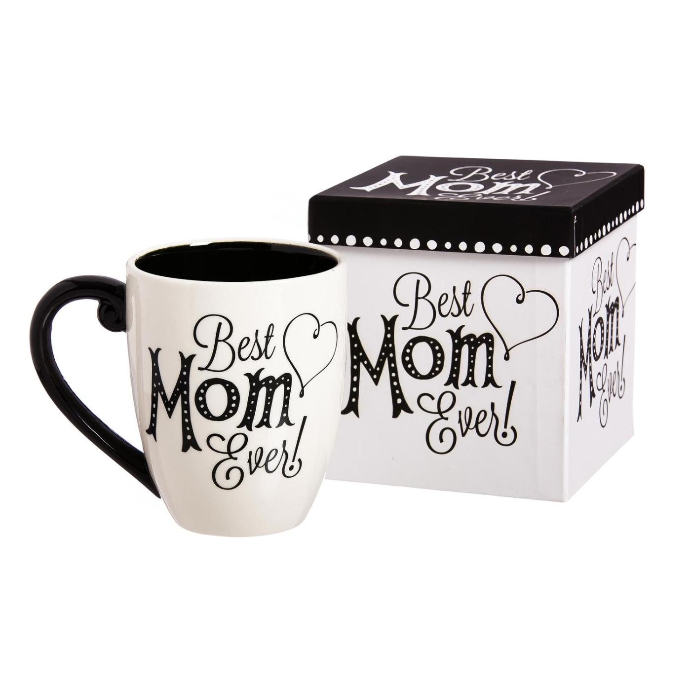 Kuchyňské a zábavní hrnky na kávu a čaj | Keramický hrnek Plow & Hearth s černým inkoustem O Joe v krabičce, 18 oz, Mom