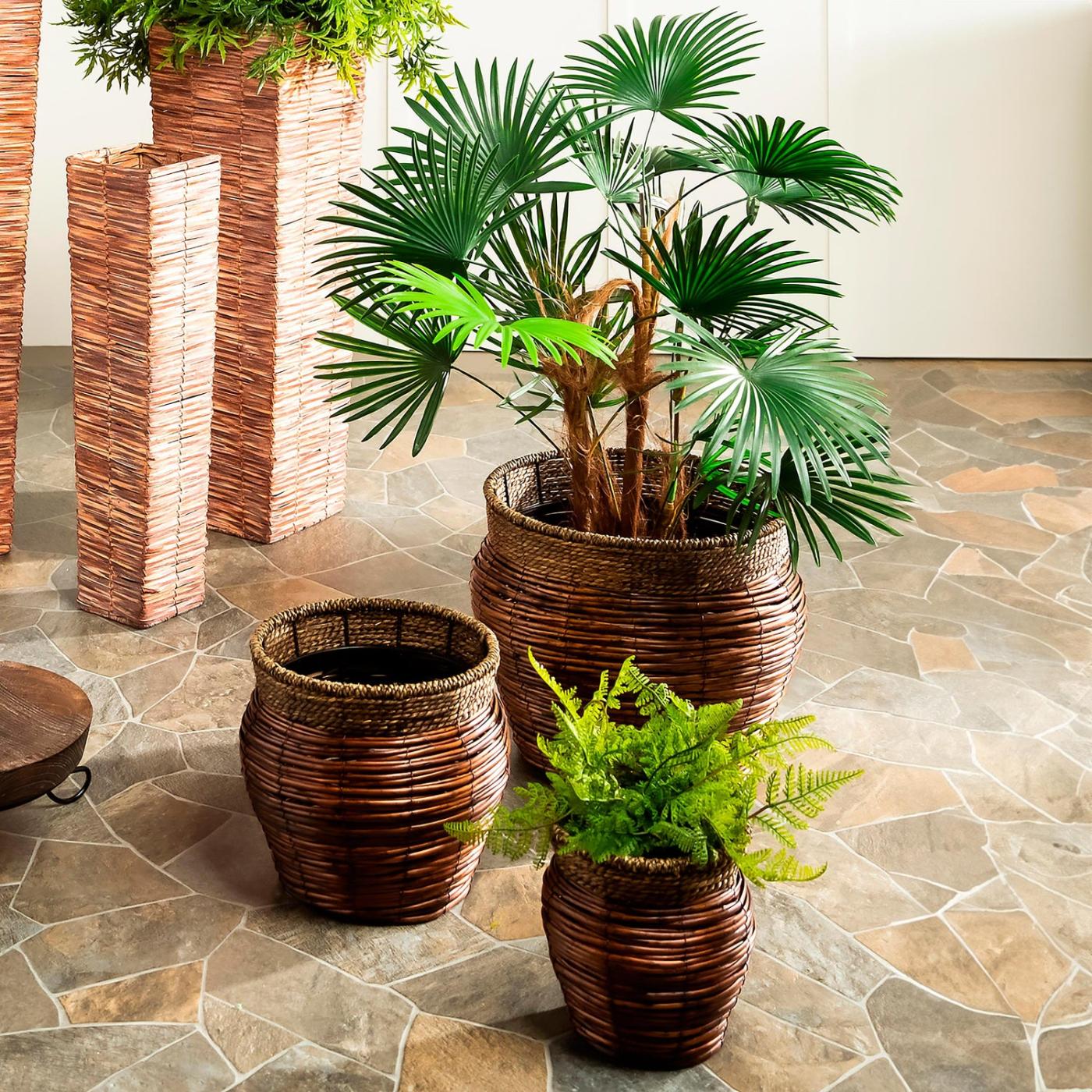 Květináče a vázy do interiéru | Kulaté květináče s rákosím Plow & Hearth, sada 3 kusů