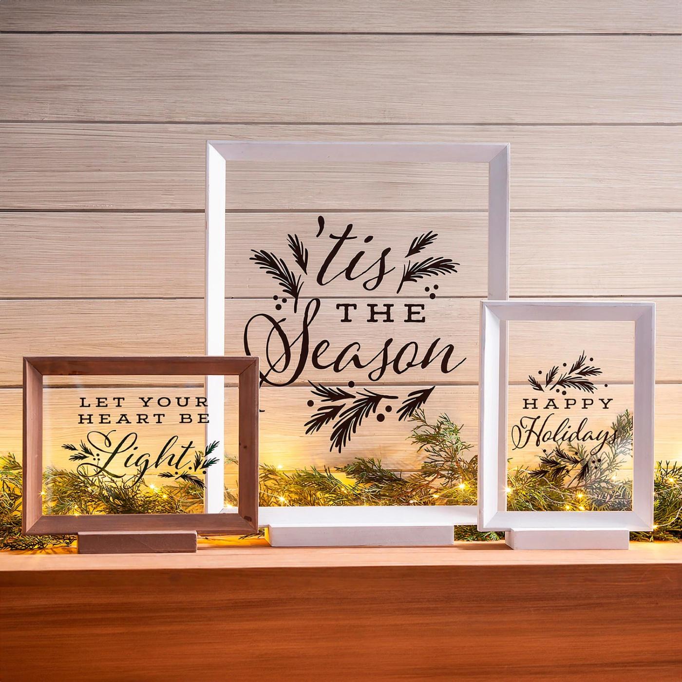 Ozdobte si svůj sváteční domov radostnými vzkazy! Tato sada 3 vánočních přání v dřevěných rámech je jedinečná dekorace, kterou si zamilujete.