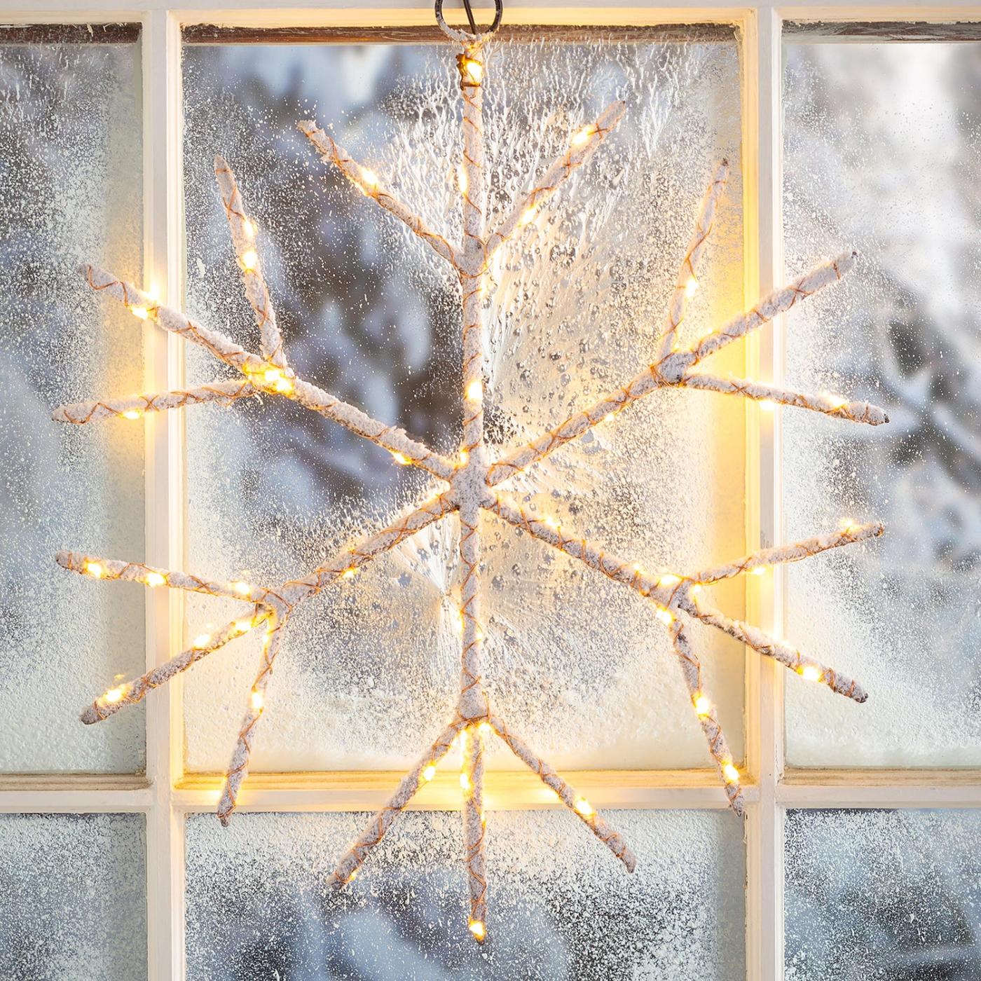 Realisticky vypadající umělé březové větve jsou tvarovány do tvaru sněhové vločky a omotané řetězcem 75 teplých bílých mikro LED diod, které dodají každému prostoru zvláštní nádech.