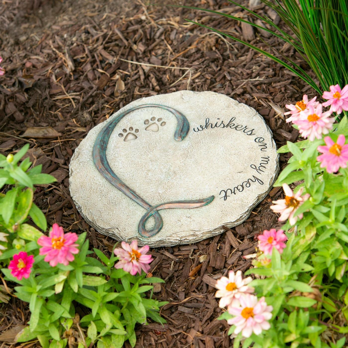 Umístěte tento krásně vyrobený kámen do své zahrady na památku milované kočky. Když se zdá, že slova nestačí, tento kámen slouží jako dojemná pocta k uctění a připomenutí zesnulé kočky. Nápis zní: „Vousy na mém srdci“ vedle dvou otisků tlapek. Umístěte kámen podél chodníku, pod svůj oblíbený strom, poblíž záhonu nebo na verandu či terasu. Lze jej také snadno vystavit v interiéru. Je vyroben z polystonové pryskyřice a ošetřen speciální povrchovou úpravou pro ochranu před sluncem a povětrnostními vlivy.