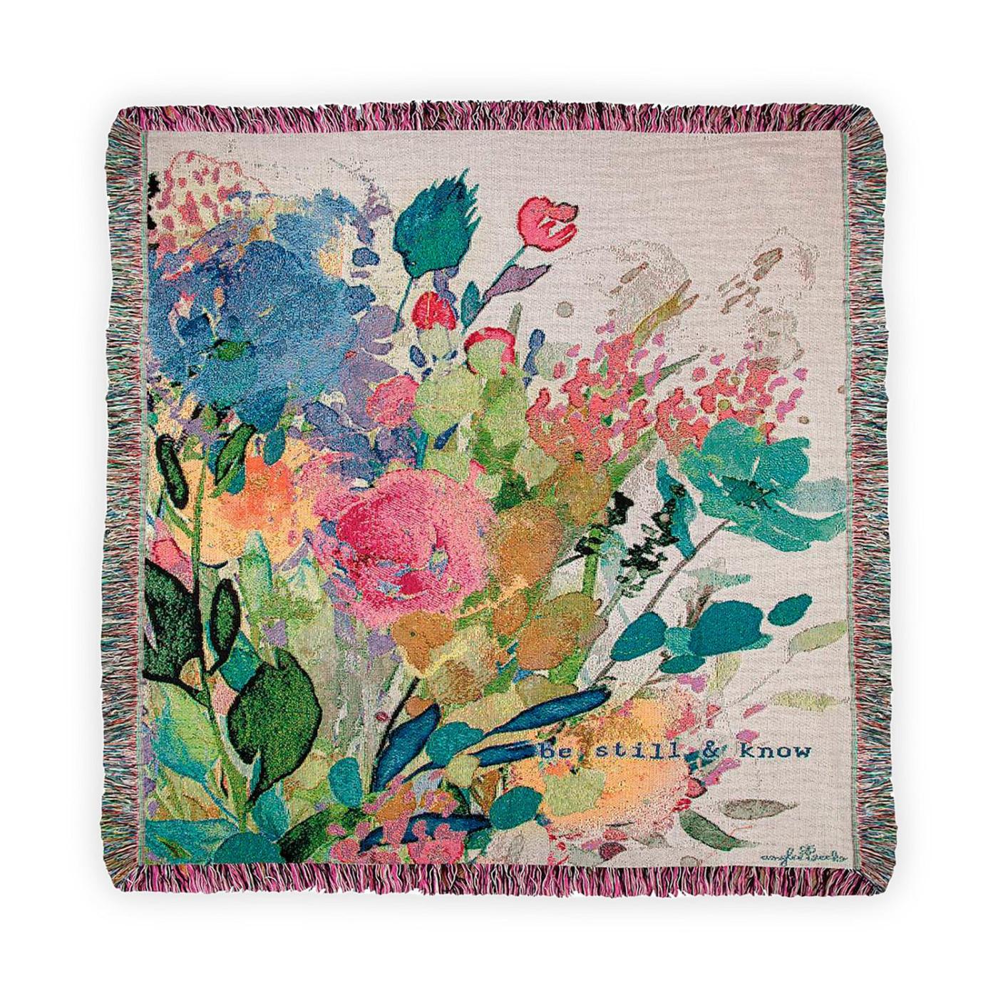 Tkanina je silná, takže tento vzor lze použít jako deku, přehoz na postel nebo dokonce jako závěs na zeď. Přehoz má v dolním rohu jemný text „buď v klidu a vím“. Je to také skvělý dárek!