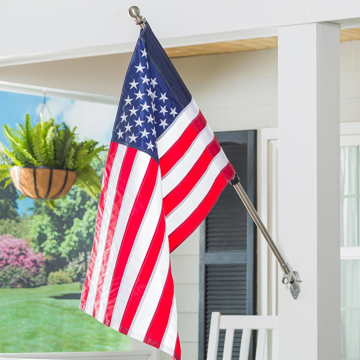 Tento stožár je kompatibilní se všemi vlajkami velikostí domů a sídel a může se natáhnout od 96 do 152 cm na délku. Odšroubujte kulatý nástavec a snadno nasaďte všechny své oblíbené vlajky na stožár.