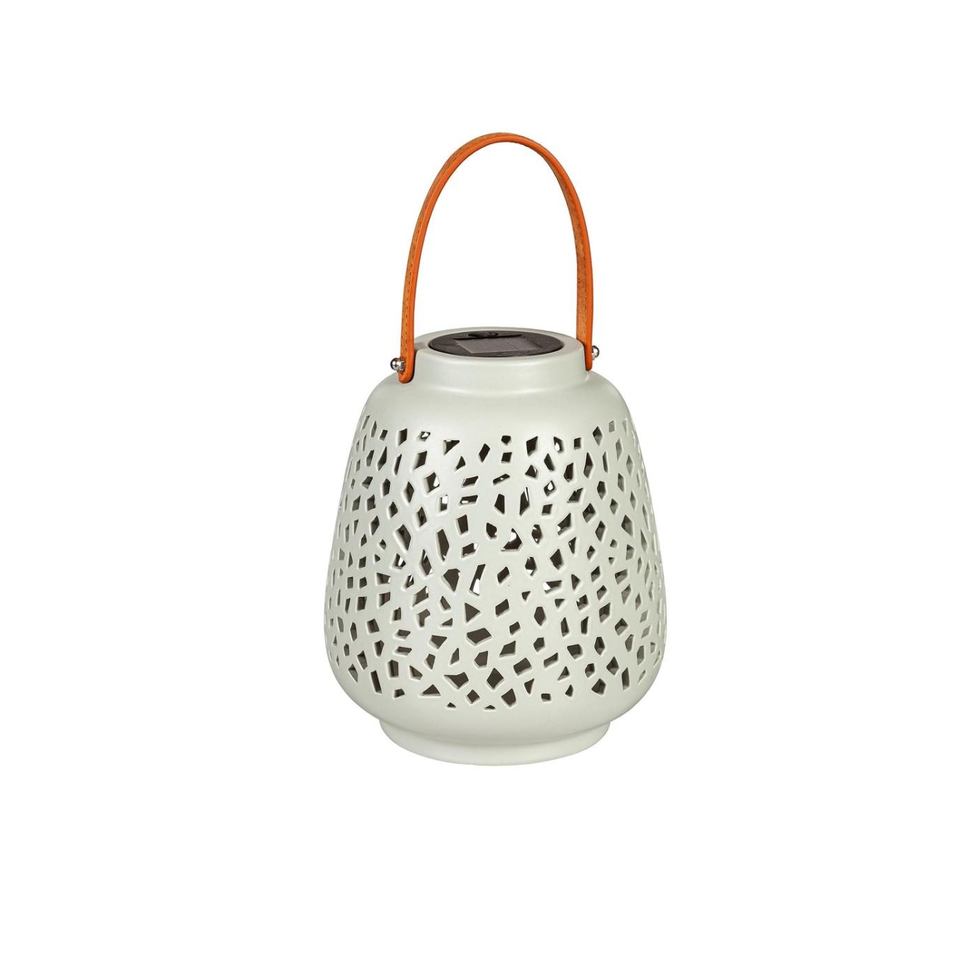 Solární doplňky pro venkovní bydlení | Keramická tečkovaná solární lucerna s vyřezávanými detaily od Plow & Hearth