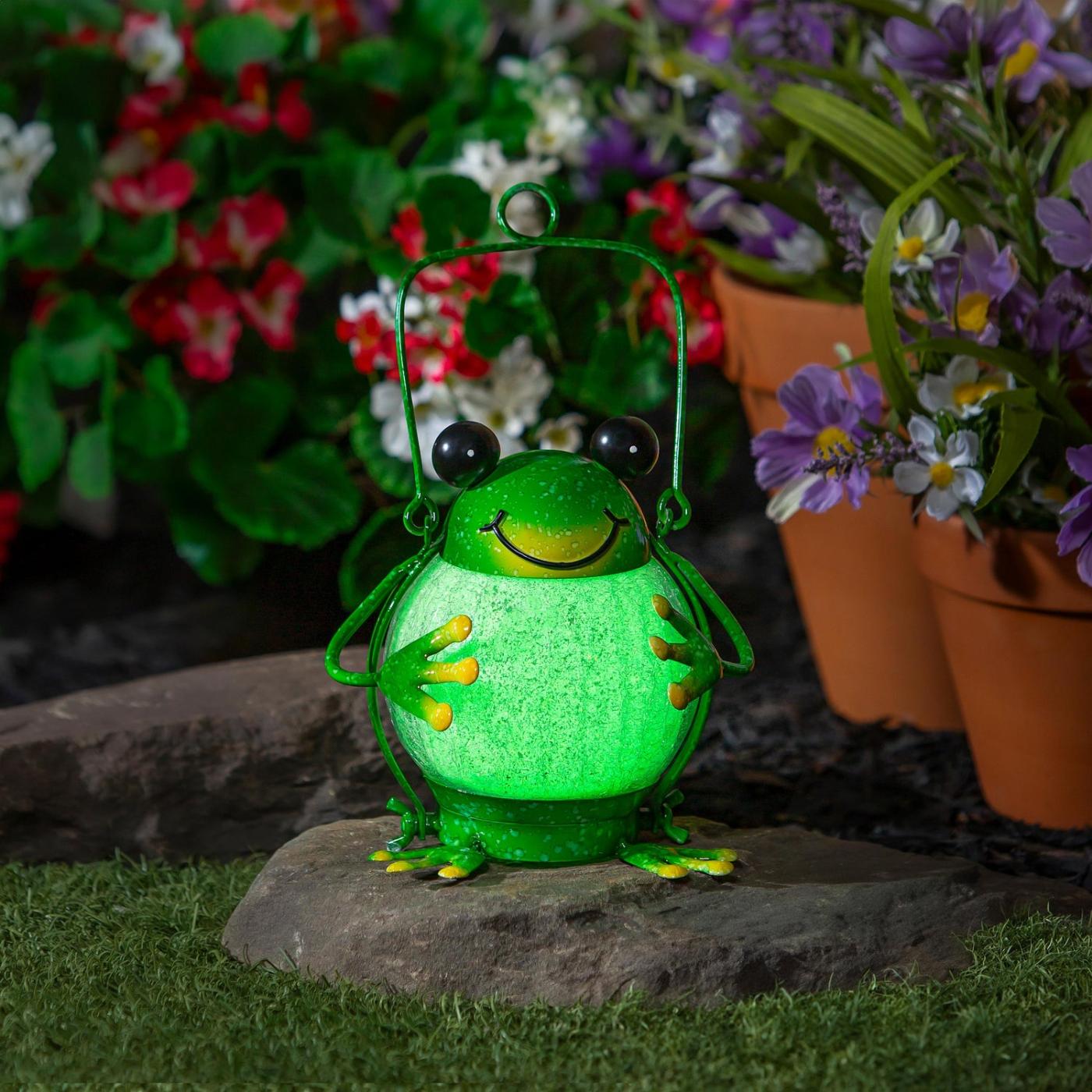 Solární doplňky pro venkovní bydlení | Pluh a krb svítící lucerna v temnotě s motivem žáby