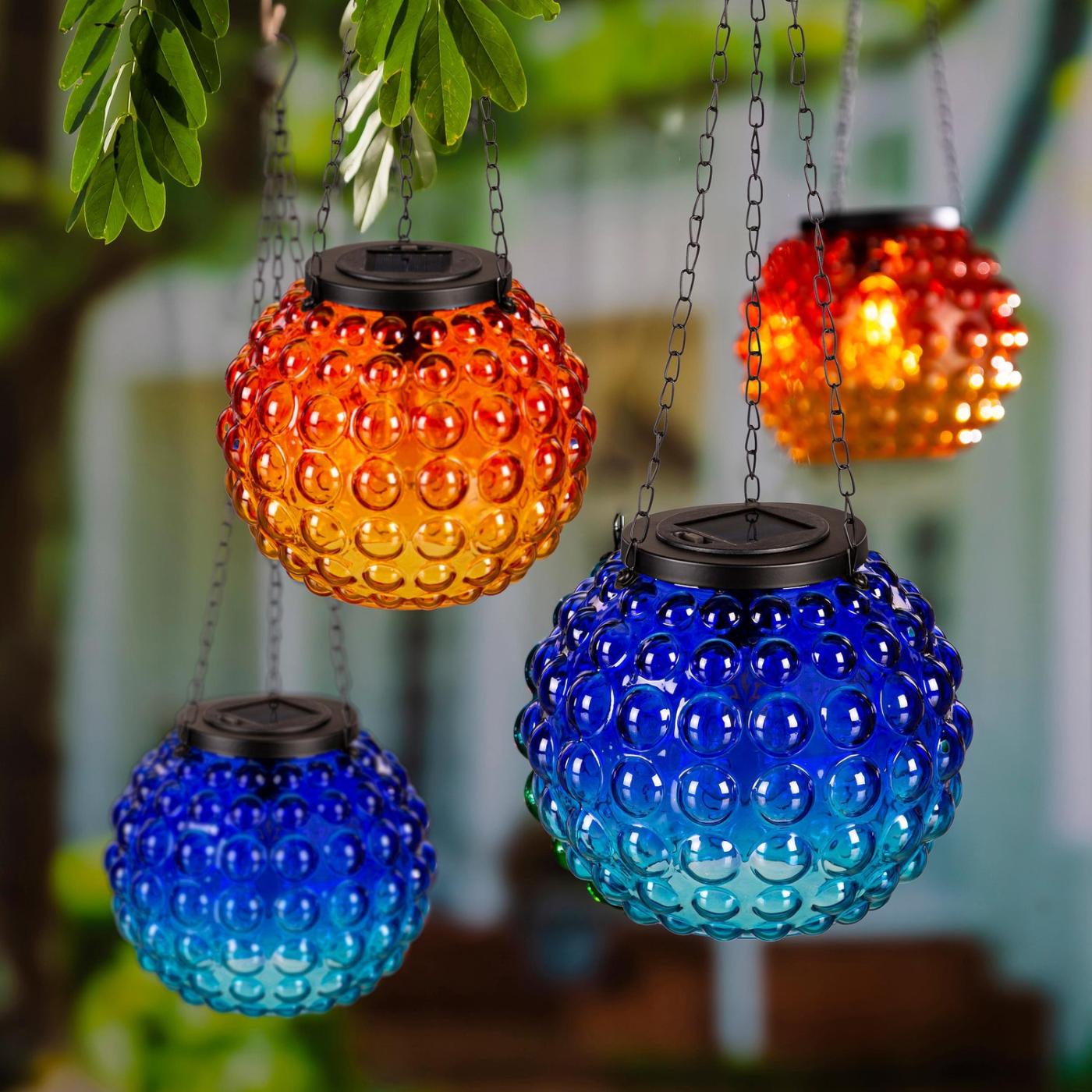 Tato sada solárních luceren z gradientního skla přináší do vašeho venkovního prostředí jednoduché a zářivé barvy díky svým barevným a texturovaným povrchům.
