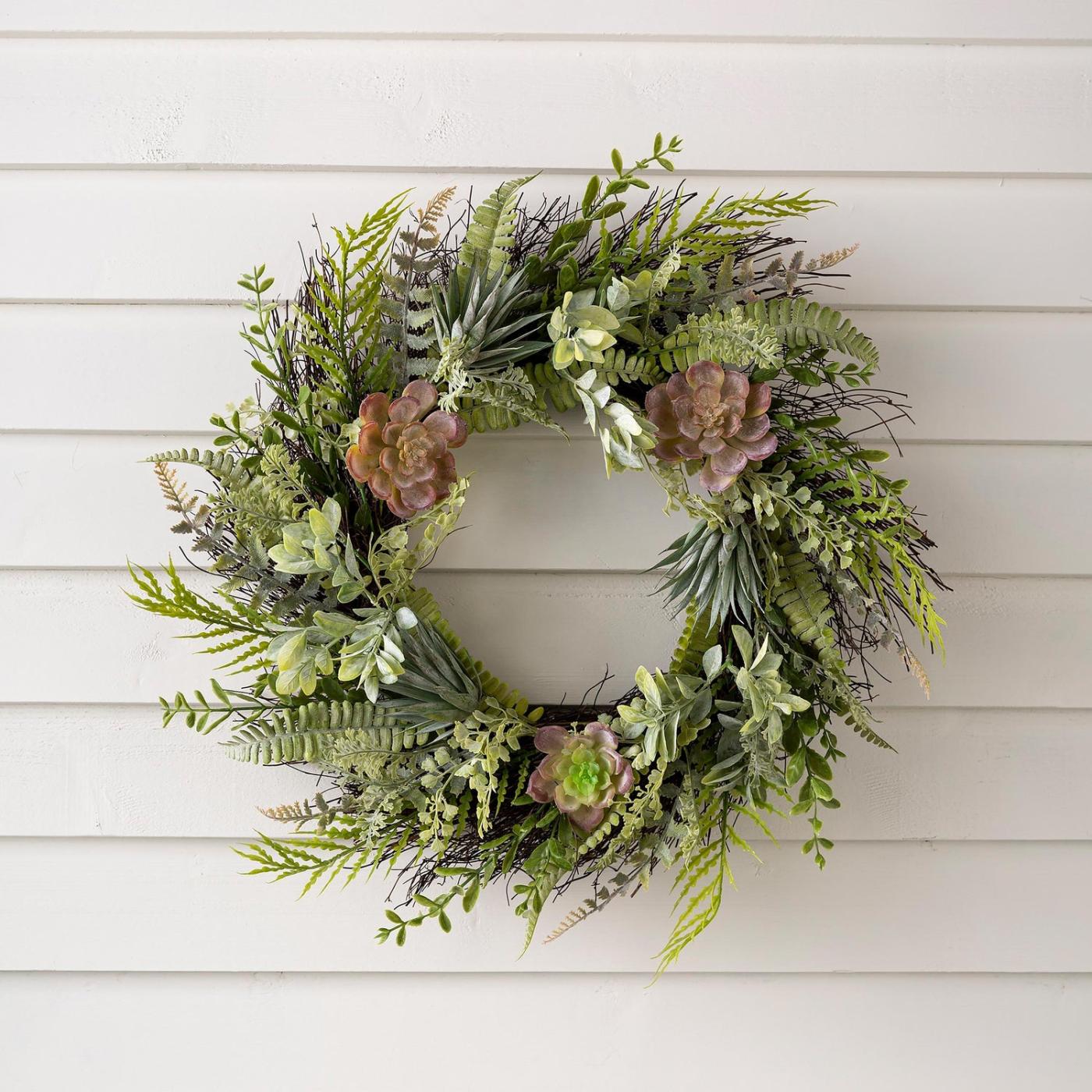 Věnce do interiéru | Věnec z umělých sukulentů a kapradin od Plow & Hearth