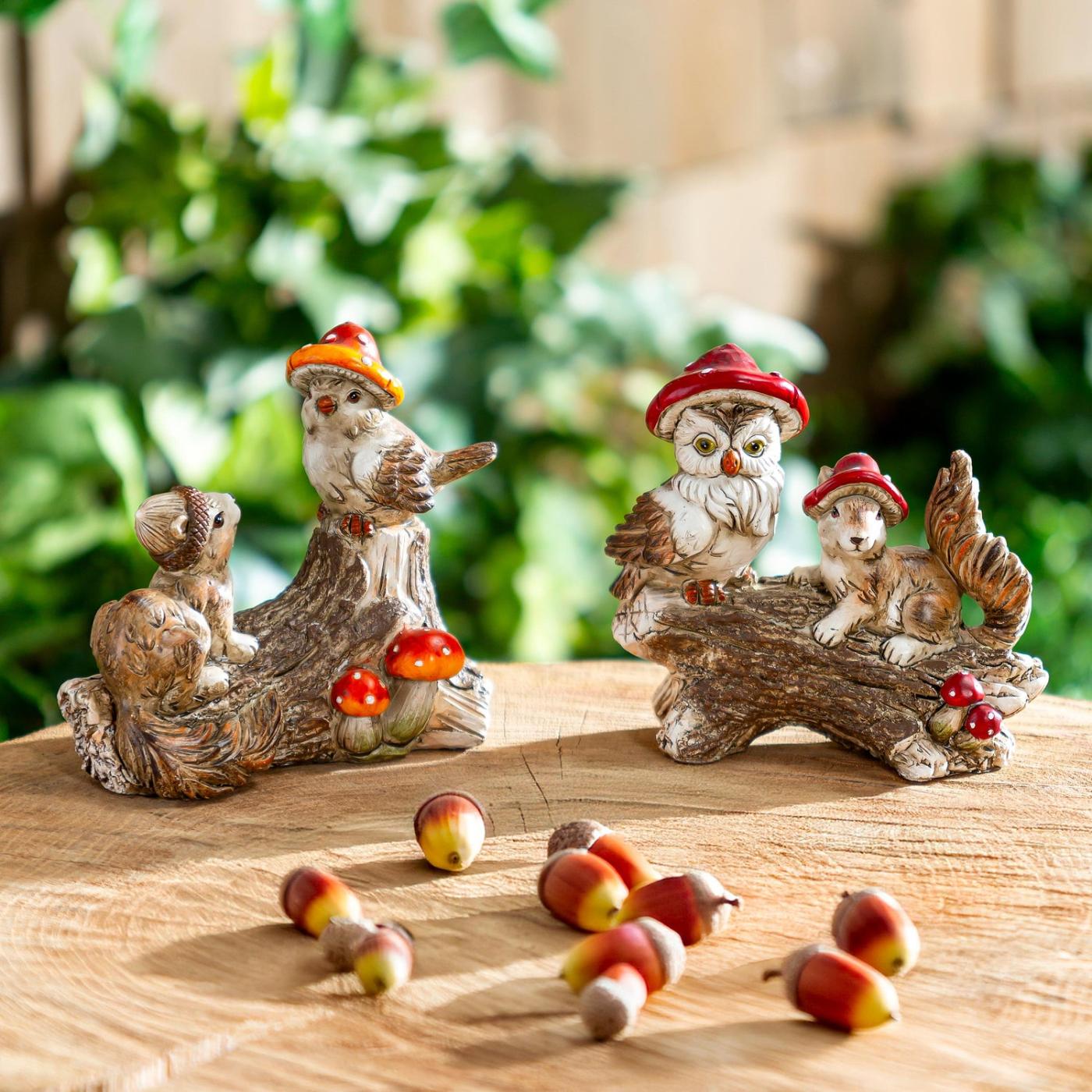 Venkovní zahradní sochy | Socha zvířat z pryskyřice s houbami a pluhem, výška 5"