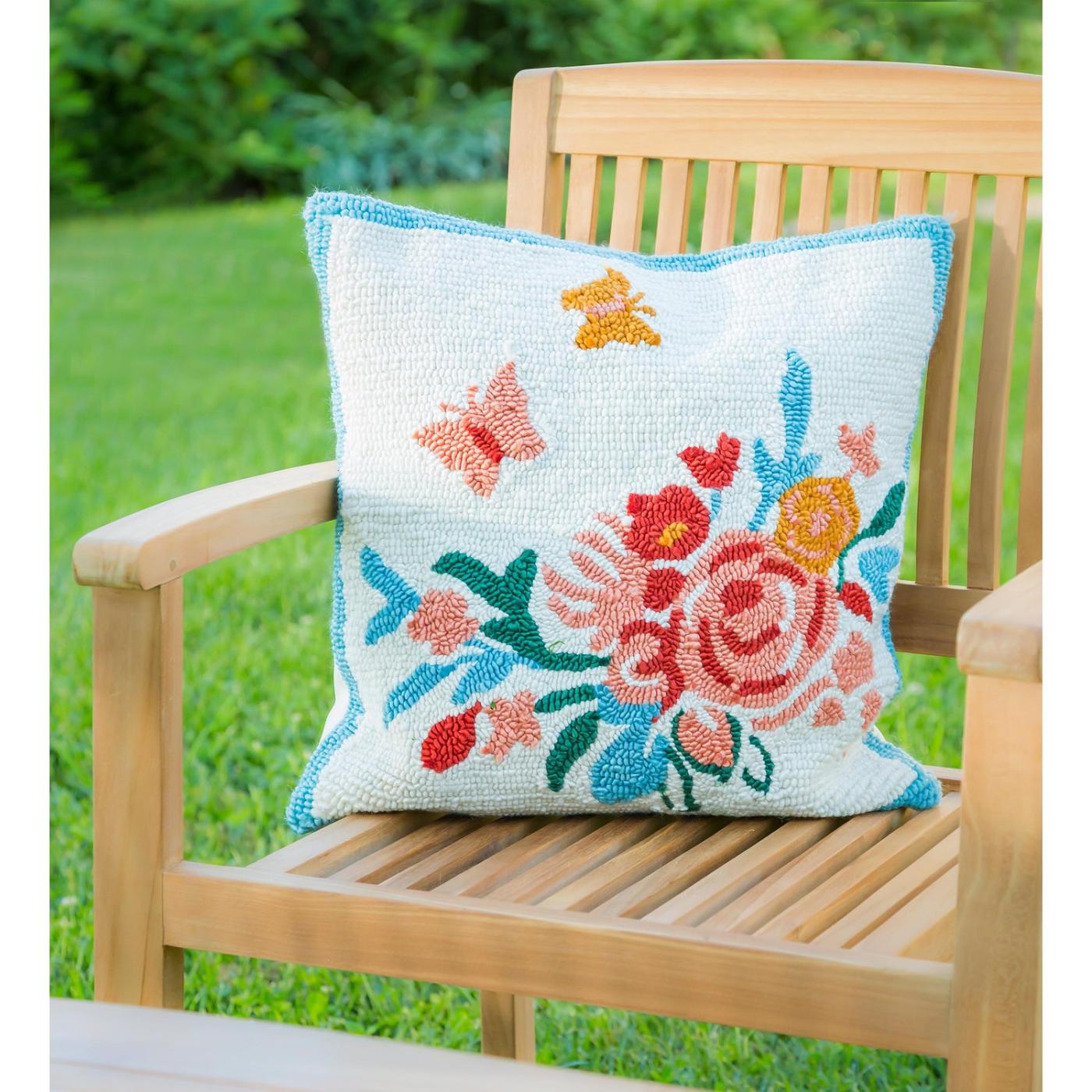 Venkovní dekorační polštáře | Polštář s háčky Plow & Hearth do interiéru/venkovního prostředí 45 x 45 cm, motýlí louka