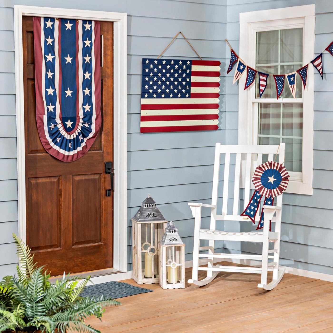 Syté barvy a mosazné kroužky tohoto banneru jsou ideální pro ozdobení verandy, zábradlí, dveří a dalších míst. Buďte kreativní a předveďte svůj styl k Dni nezávislosti, na Den památky padlých nebo k celoročnímu vystavení.