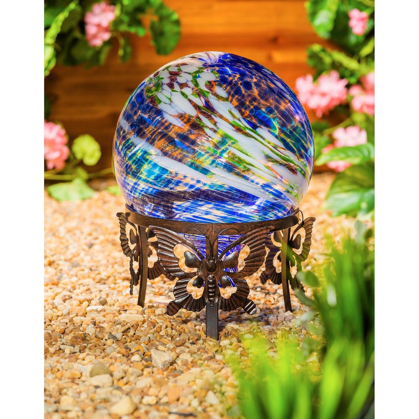 Venkovní koule pro pozorování | Skleněná koule pro pozorování Plow & Hearth, modrá a zelená, 25 cm, svítící ve tmě