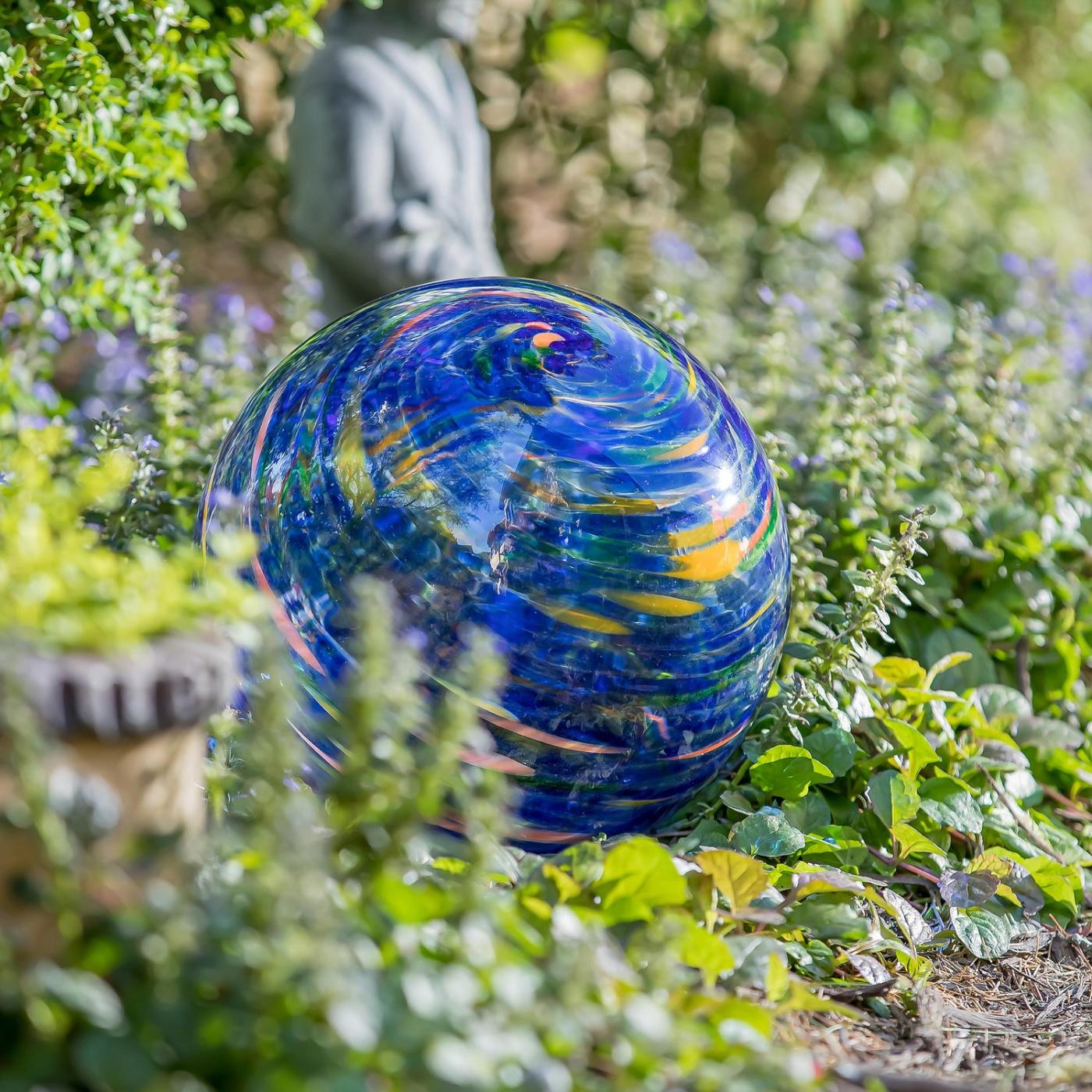 Venkovní koule pro pozorování | Skleněná koule s vířivým efektem od Pluhu a krbu se stojanem, královská modrá