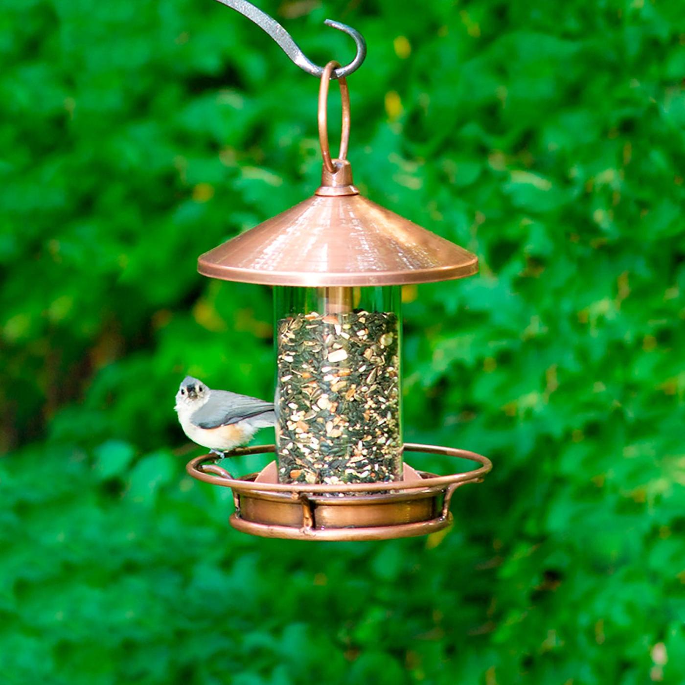 Venkovní krmítka pro ptáky | Klasické válcové krmítko pro ptáky Plow & Hearth z antické mědi a plexiskla