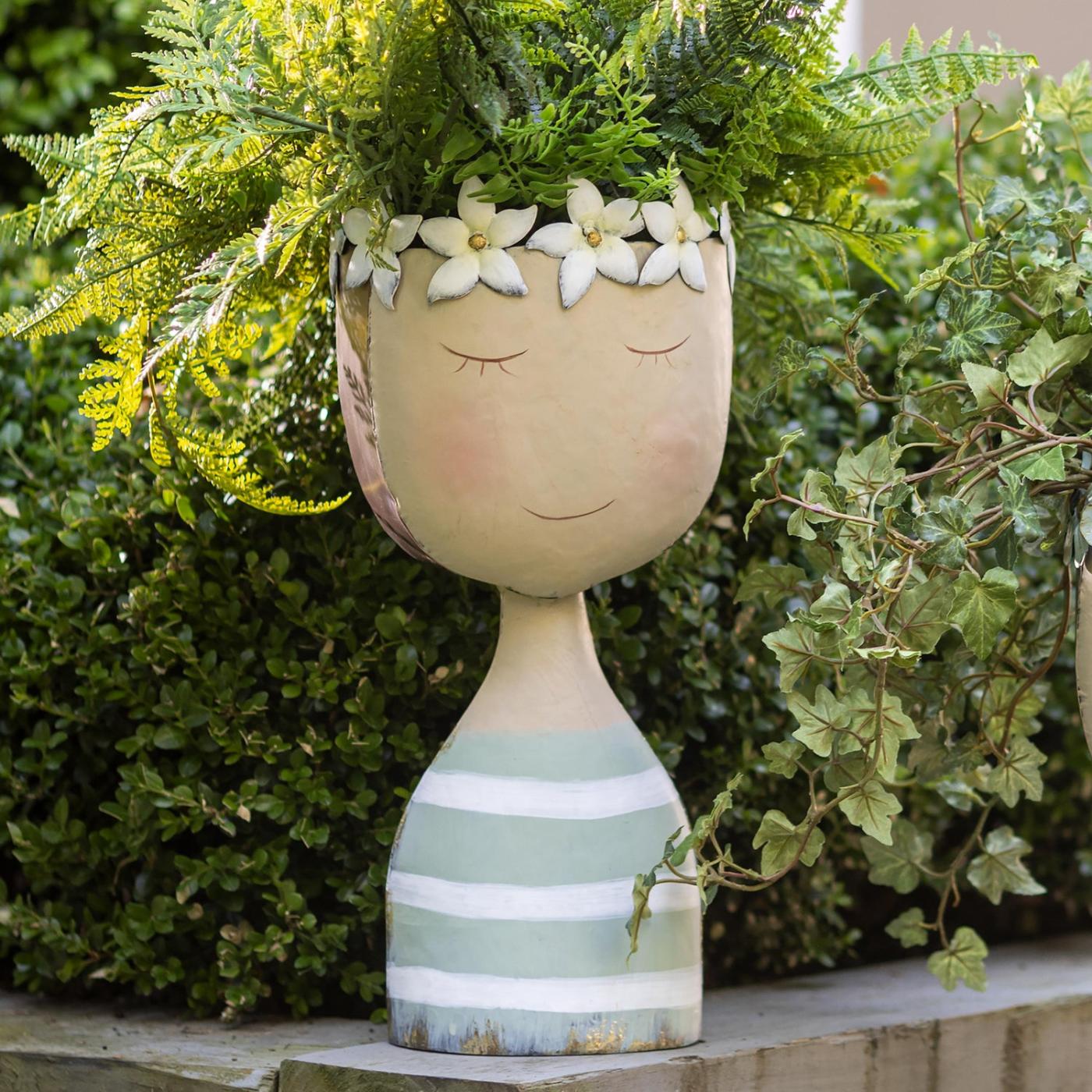 Nádherný, detailní a jedinečný – tento květináč jistě dodá vaší verandě, terase nebo zahradě trochu zábavy. Květináč je okouzlující a má ručně kartáčovaný vzhled se zlatými detaily na plášti a květinové koruně. Obličej má jemné detaily s krásnými řasami a růžovými tvářičkami.