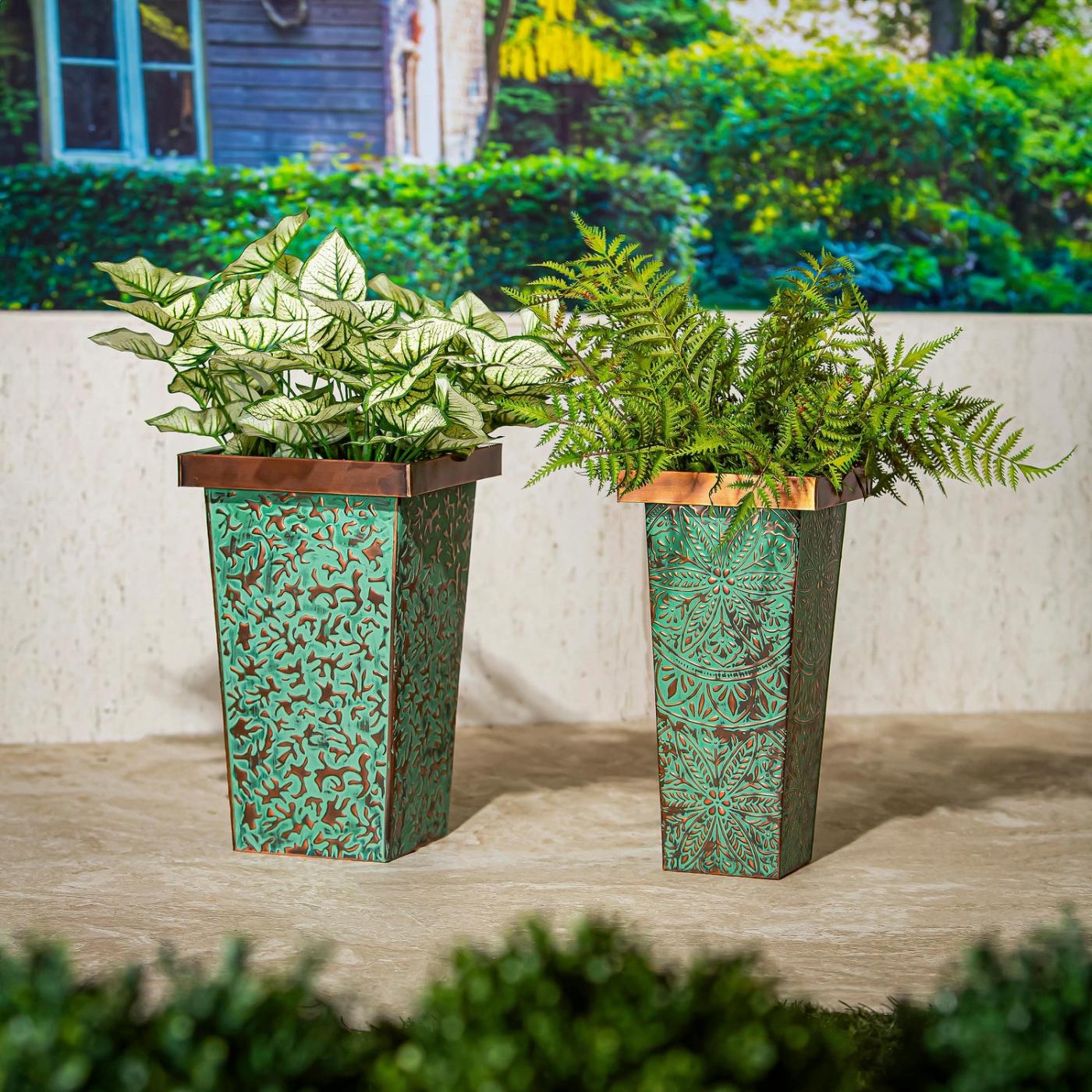 Venkovní květináče a stojany na rostliny | Sada 2 vložených květináčů s reliéfními čtvercovými dvířky Plow & Hearth