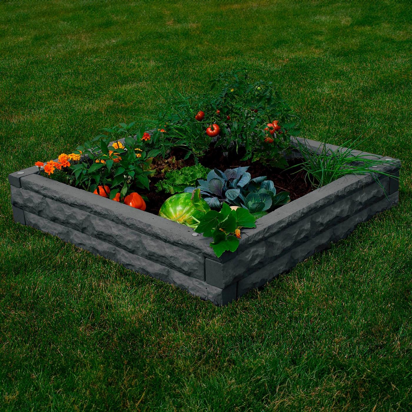 Venkovní květináče a stojany na rostliny | Vyvýšený záhon Plow & Hearth s imitací kamene – samozavlažovací 4 x 4