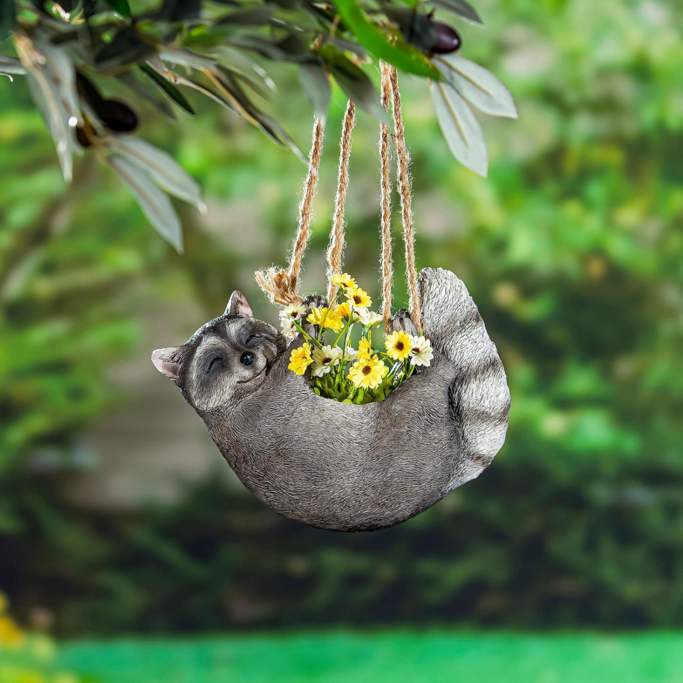 Venkovní květináče a stojany na rostliny | Závěsný květináč Plow & Hearth Raccoon s jutou