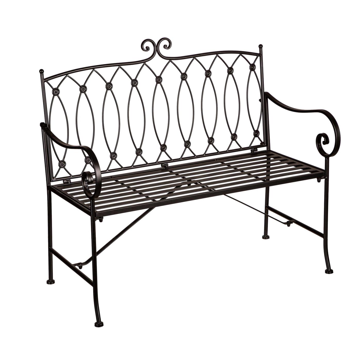 Tato venkovní zahradní lavička je vyrobena ze železa s černým práškovým lakováním. Nosnost je 180 kg. Vyžaduje montáž.