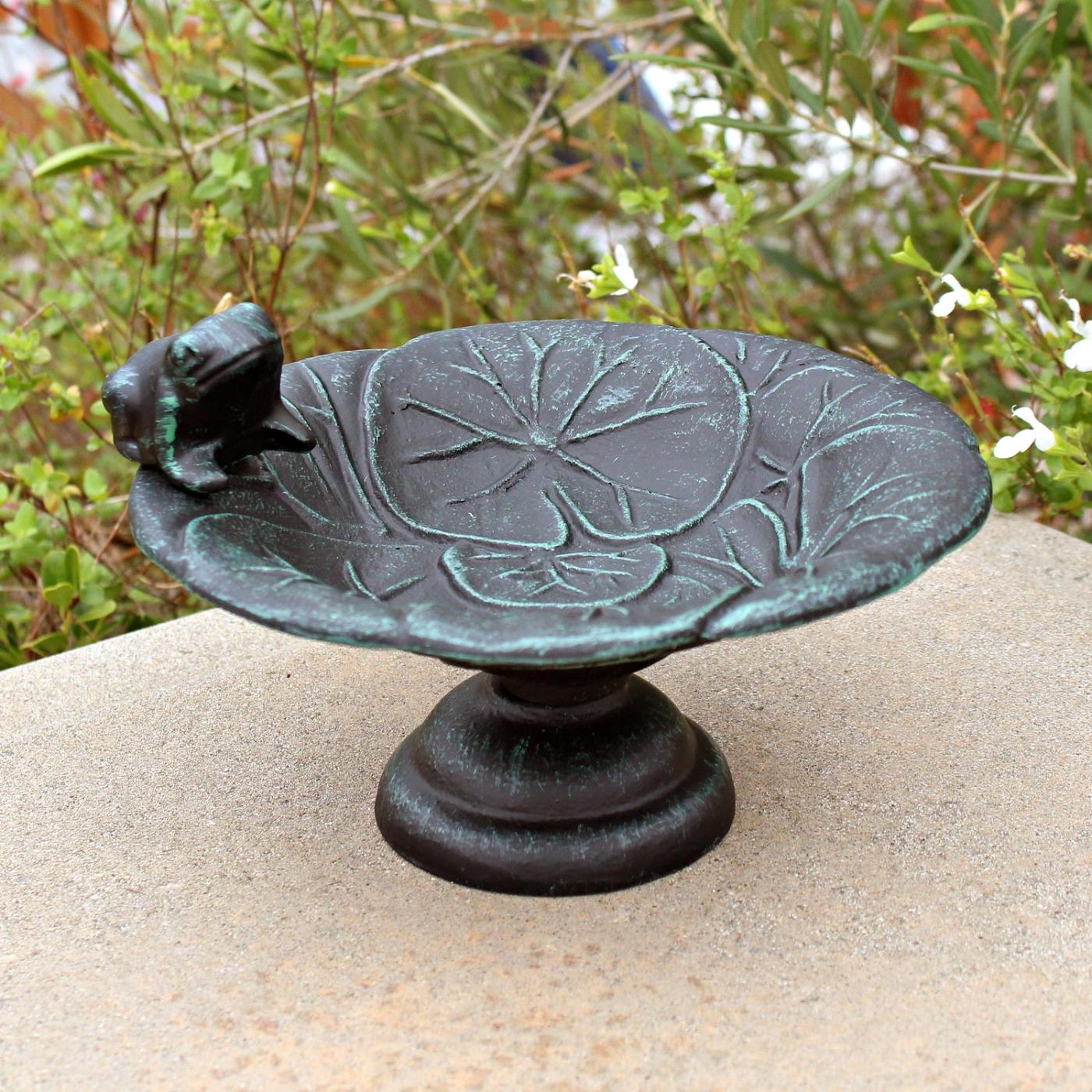 - Venkovní ptačí koupaliště | Stolní kovové ptačí koupaliště Plow & Hearth Frog