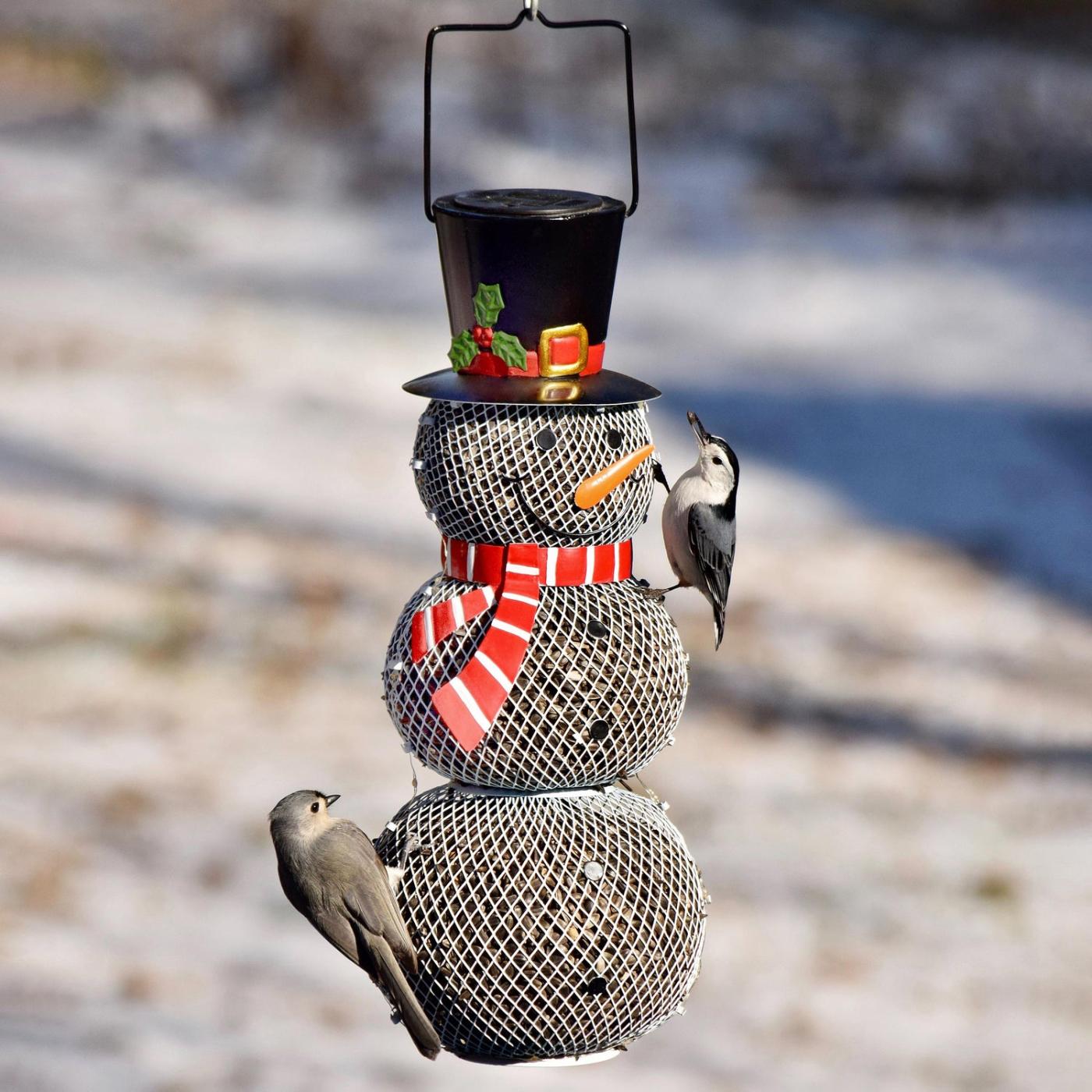Jeho klobouk je ozdoben slavnostním červeným pruhem a cesmínou a nosí sváteční šálu. Tento usměvavý sněhulák je snadnou aktualizací vaší zahrady. Skvělý na svátky i po celou zimu (zejména když zpěvní ptáci potřebují další semínka).