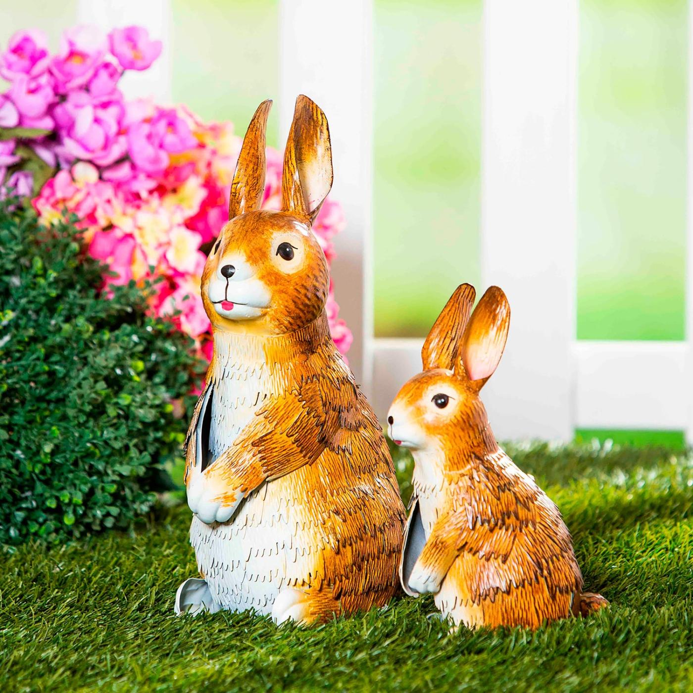 Venkovní zahradní sochy | Pár kovových králíků - pluh a ohniště