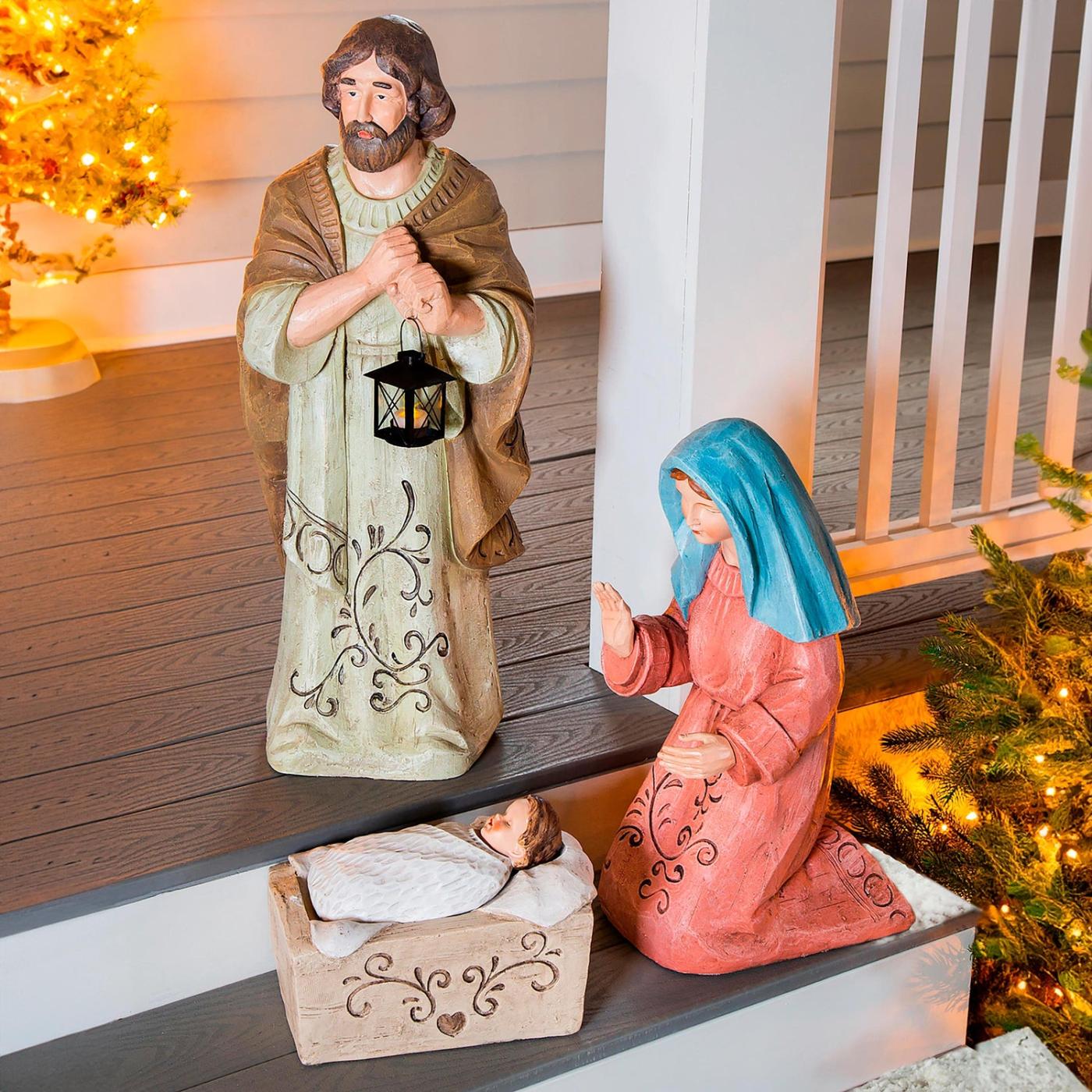 - Sada 3 kusů, Marie, Josef a malé Ježíšek, vytváří svatou scénu; Socha Josefa 31" V