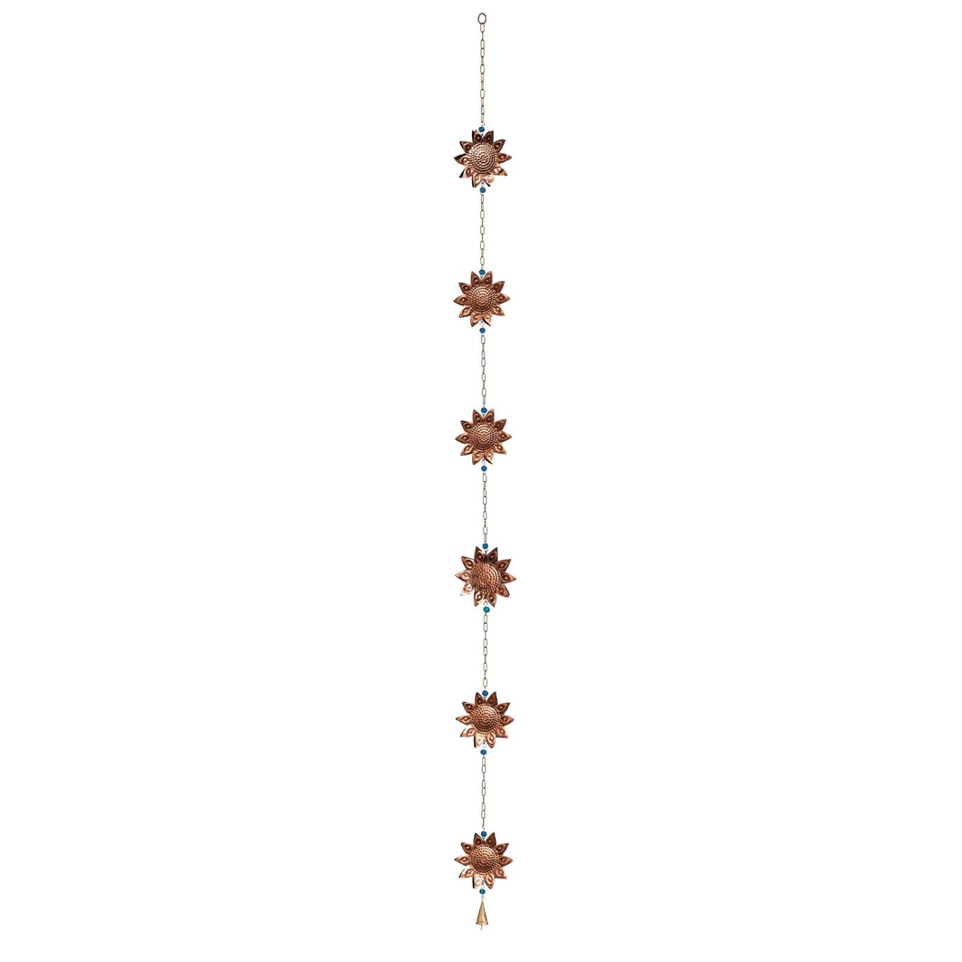 Poslouchejte zvuk tohoto déšťového řetězu, kdykoli padá déšť, a jeho sladký a jemný zvuk vás jistě potěší. Řetízek má krásný design slunečnice s texturovanými detaily. Deštivé dny si můžete prozradit vystavením tohoto elegantního déšťového řetězu v jakémkoli venkovním prostoru. Kov odolný vůči povětrnostním vlivům zajišťuje, že je bezpečný pro venkovní použití a přináší radost sezónu za sezónou dešťů. Jednoduše jej zavěste za kovové poutko a poslouchejte, jak déšť stéká po tomto okouzlujícím designu.