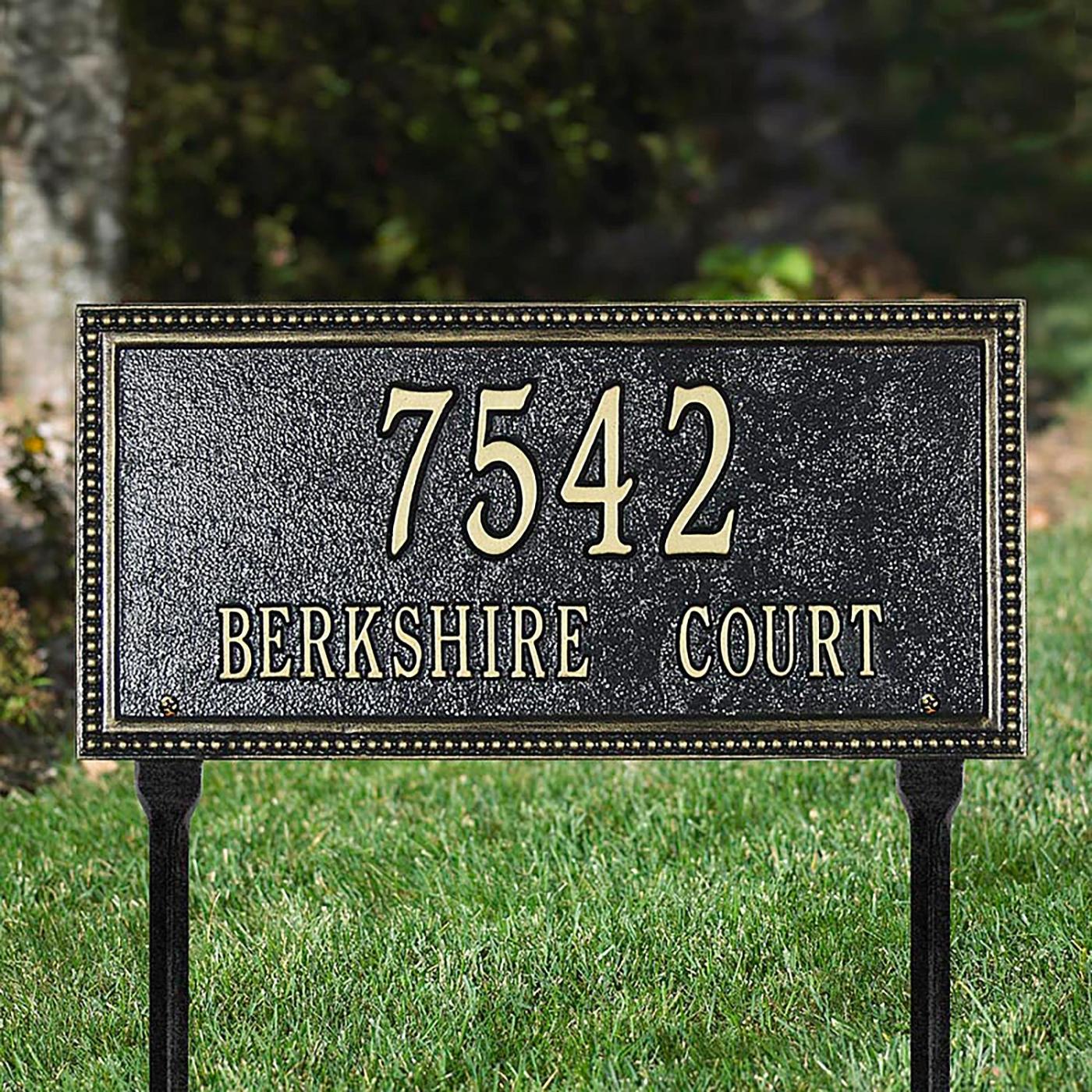 Zobrazte svou adresu na naší vysoce kvalitní nástěnné nebo zahradní plaketě z korálkového litého hliníku. Nástěnné a zahradní plakety, vyrobené na zakázku v České republice z recyklovaného litého hliníku, mají korálkový okraj, který dodá vaší adrese odlišnost. Obě plakety mají reliéfní kovový nápis na barvě pozadí dle vašeho výběru. Práškový lak je chrání před povětrnostními vlivy. Zahradní plaketa je dodávána s hliníkovými kolíky o průměru 18" odolnými proti povětrnostním vlivům a montážním materiálem.