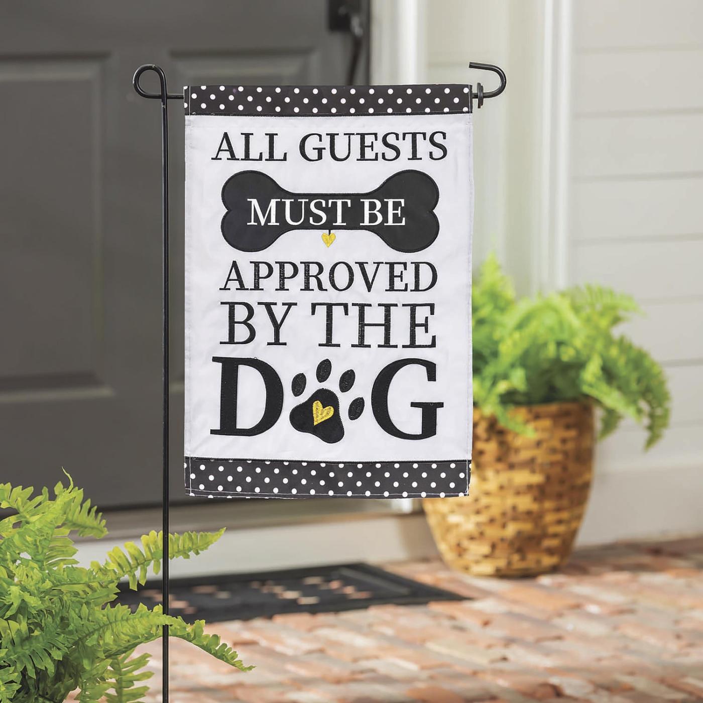 Tato zábavná vlajka s nápisem „Všichni hosté musí být schváleni psem“ má okouzlující design, ideální pro domácnosti přátelské ke psům. Tato vlajka o velikosti zahrady, doplněná psími akcenty, je ideální pro použití v každém ročním období.