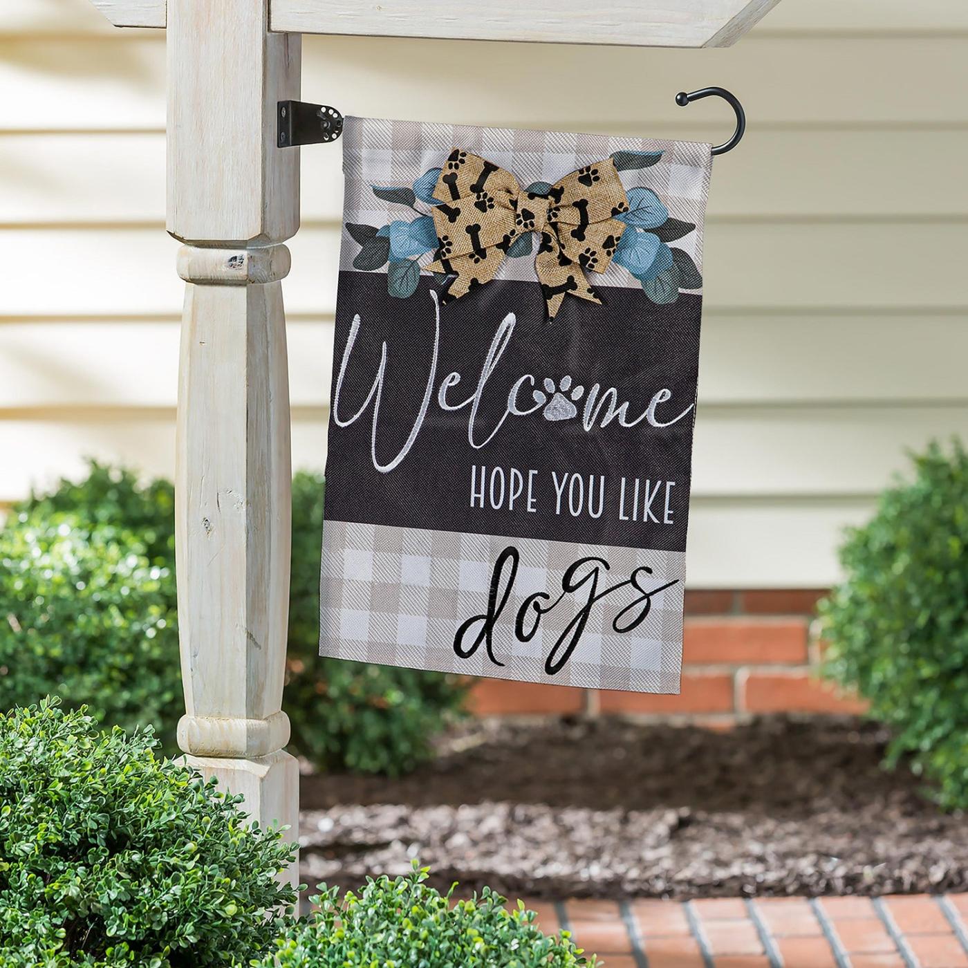 S texturovanou mašlí a nádhernou barvou přivítejte své hosty vzkazem „Vítejte, doufám, že máte rádi psy“ pro zábavné pozdravení. Tato vlajka je perfektním doplňkem pro milovníky psů, aby projevili trochu lásky svým chlupatým kamarádům.