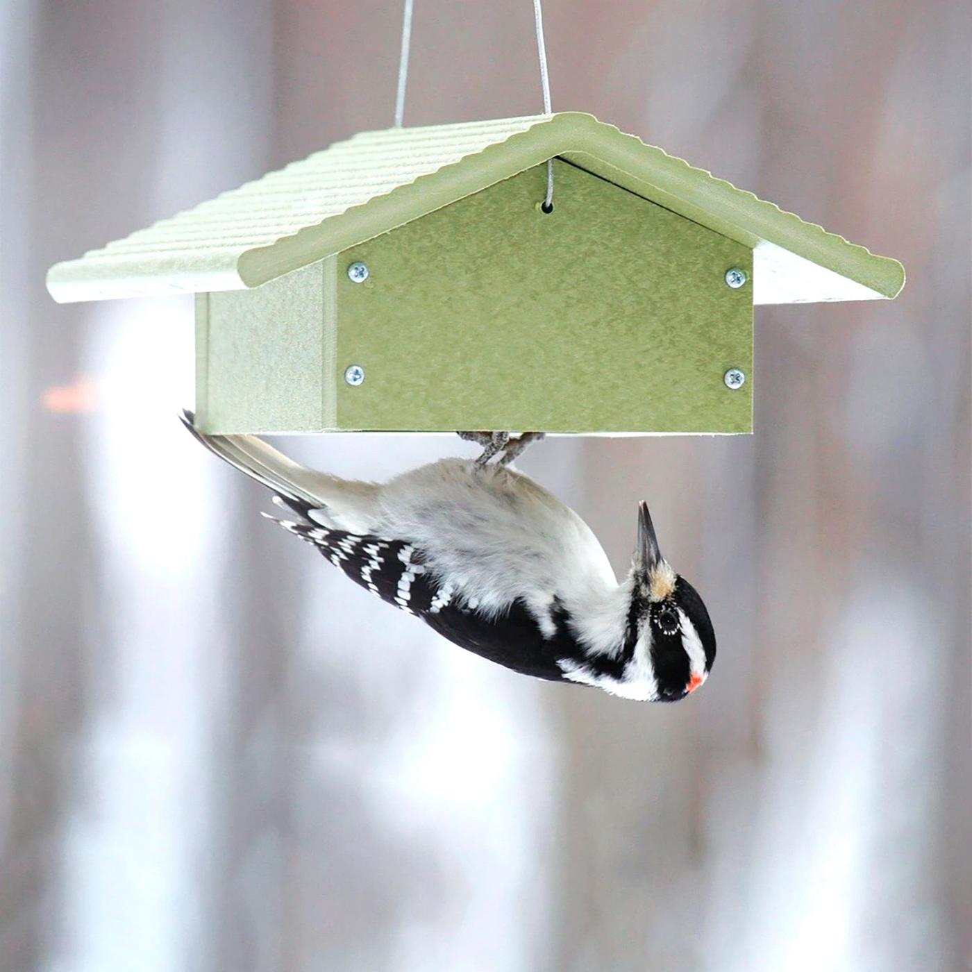 Atraktivna zelena boja dodaje zanimljivost svakom vanjskom okruženju, a jedinstveni naopaki dizajn privlači plave ptice, kućne zebe, brgljeze, sjenice, šojke, ljubičaste zebe, sjenice, vučne zmije, djetliće i druge. Nadstrešnica u potpunosti štiti poslasticu od vremenskih uvjeta, dok čvrsta žica za vješanje olakšava vješanje ove hranilice.