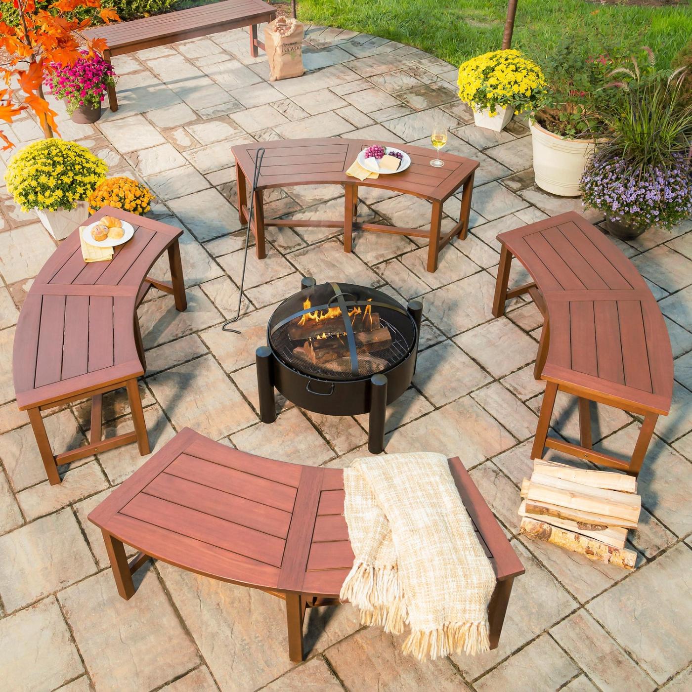 Namještaj za vanjske klupe | Zakrivljena klupa od letvica od eukaliptusa Plow & Hearth