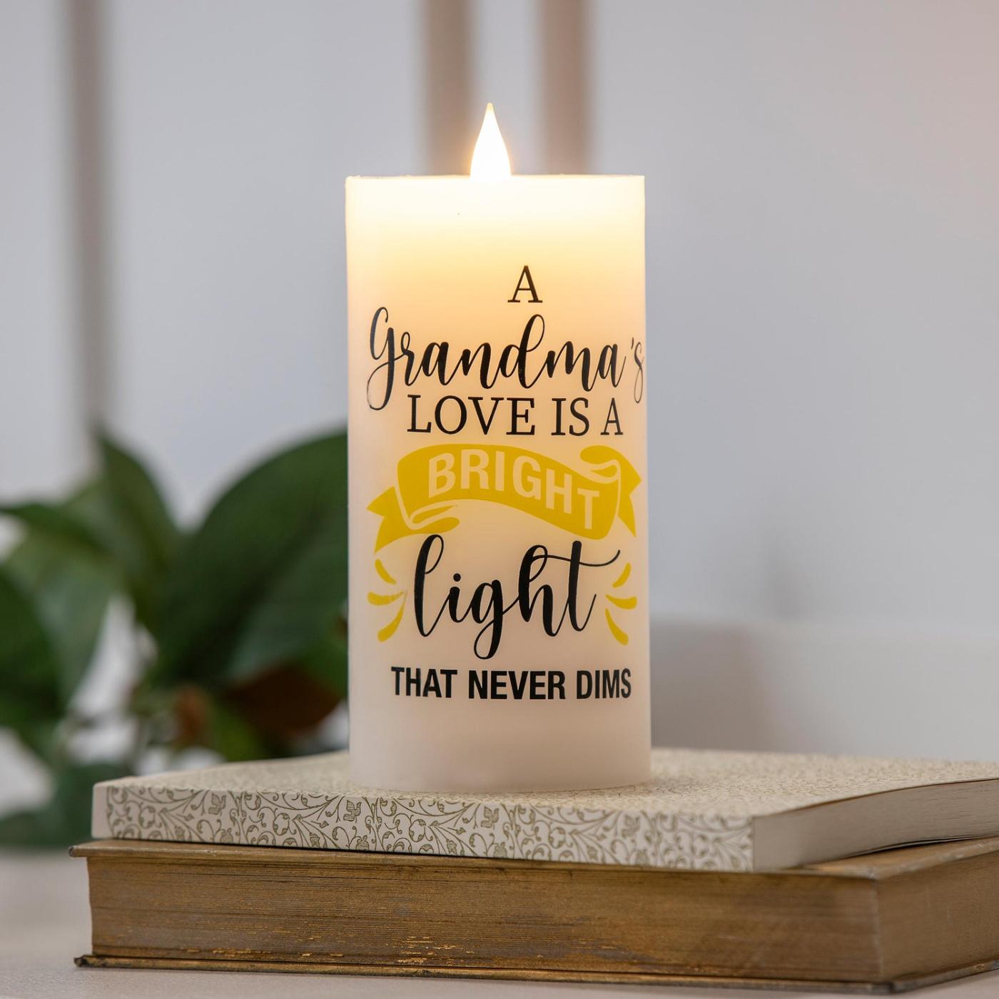 Pretvorite bilo koji prostor u opuštajuće utočište uz ovu LED svijeću. Ima slatku poruku koja glasi: „Bakina ljubav je jarko svjetlo koje nikad ne gasi.“ LED svjetla znače da se nitko ne mora brinuti o otvorenom plamenu i može se ostaviti upaljena bez brige. Opustite se nakon dugog dana u toplom sjaju ove svijeće koja stvara umirujući ambijent u svakoj prostoriji. Potrebne su tri AAA baterije, nisu uključene.