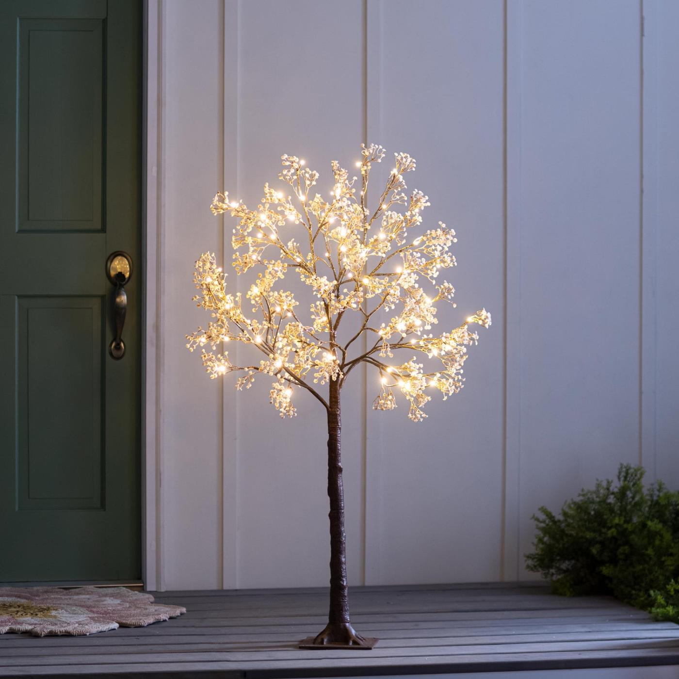 S bujnim čupercima cvijeća baby's breath i 90 mini LED lampica koje sjaje, ovo blistavo 4'H električno osvijetljeno baby's breath drvce za unutarnju/vanjsku upotrebu odiše romantičnim sjajem.