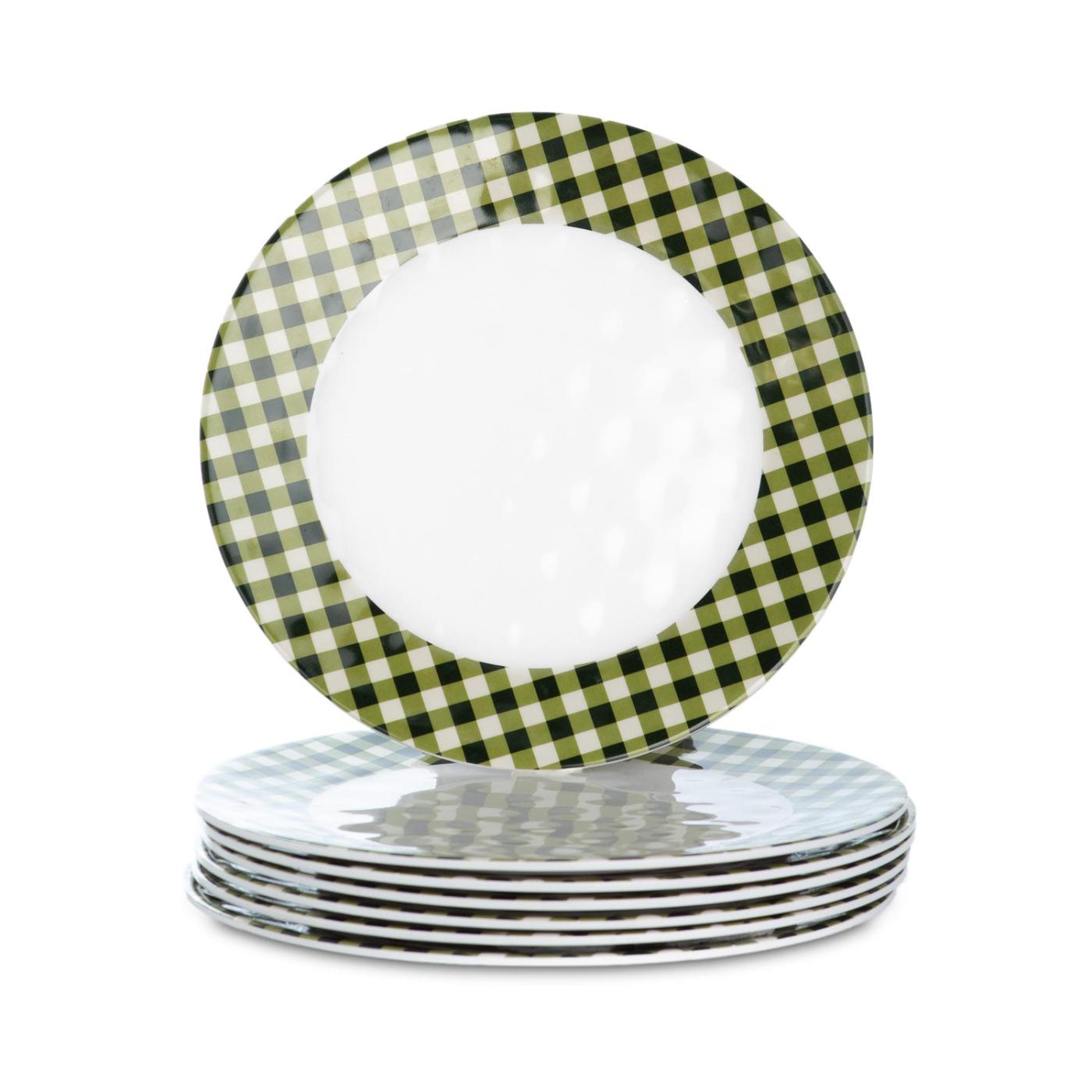 Možete kombinirati naše karirane tanjure za večeru s našim tanjurima za salatu u usklađenim printovima. Sav ovaj pribor za večeru dizajniran je tako da se slaže s nekim od naših vanjskih jastuka i suncobrana, pružajući definitivni faktor sjaja vašim okupljanjima na otvorenom.