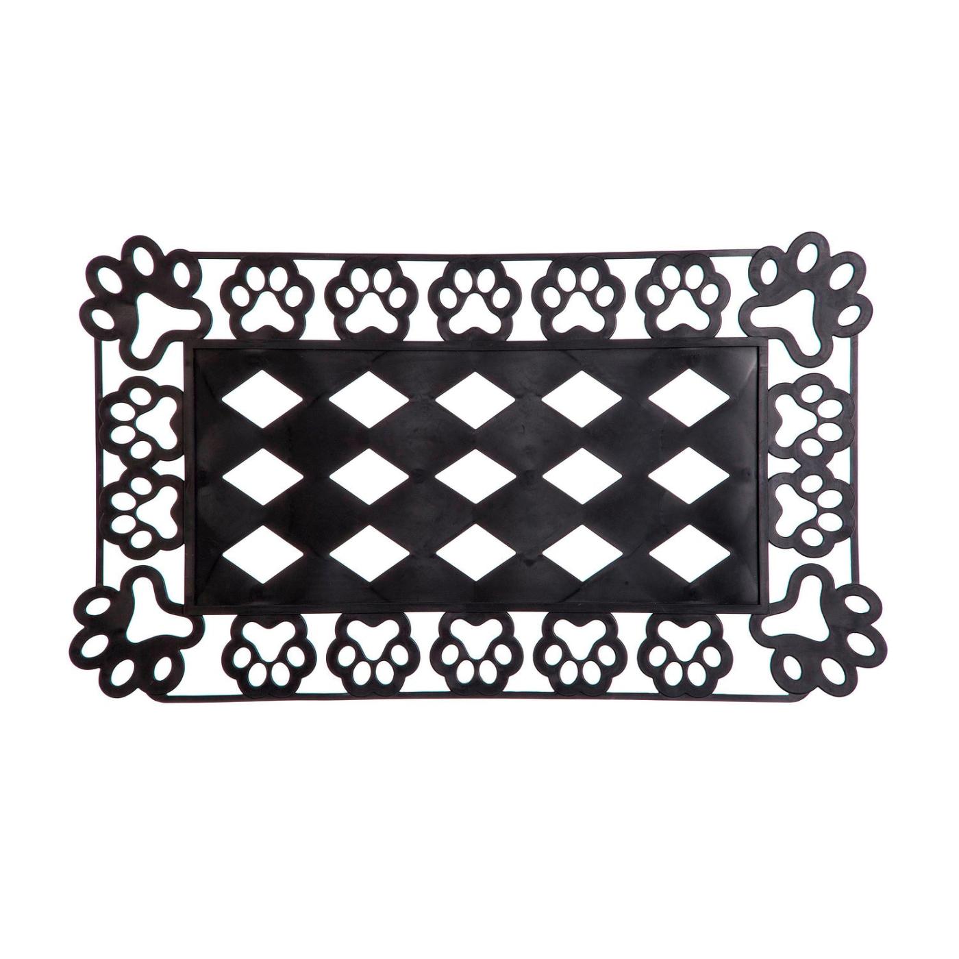 Pladanj za prostirku, pogodan za unutarnju i vanjsku upotrebu, otporan je na plijesan i ima protukliznu gumenu podlogu koja drži komad na mjestu na vašem trijemu, terasi ili podu. Otisci šapa okružuju bazu prostirke, koja ima rupe za odvodnju kako se voda ne bi skupljala na prostirci i kako bi se brzo osušila. Očistite mjesta sapunom i toplom vodom ili isperite crijevom.