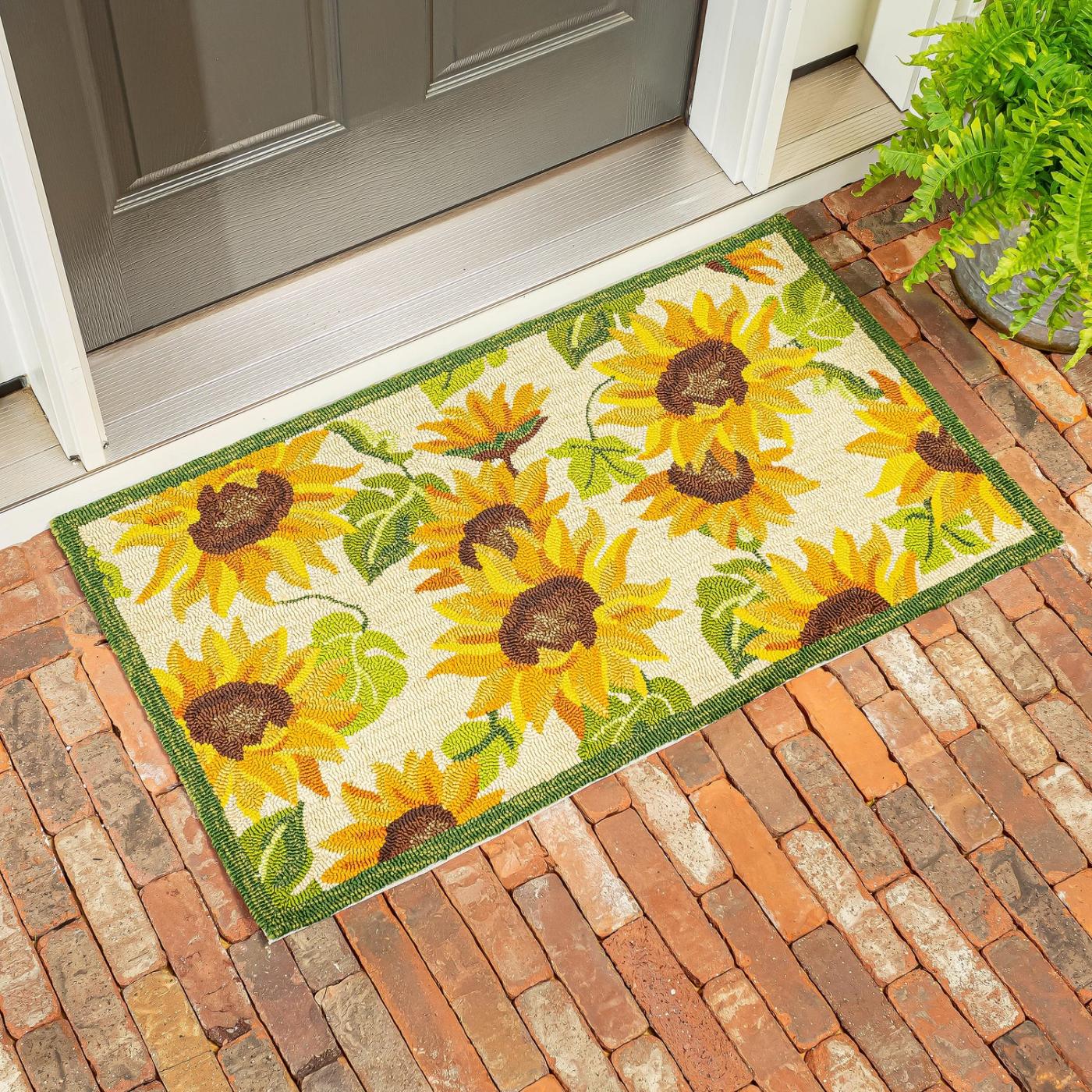 Tepisi i otirači | Tepisi s kukicama | Plow & Hearth Tepih od polipropilena s motivom suncokreta za unutarnju/vanjsku upotrebu, 60 x 107 cm