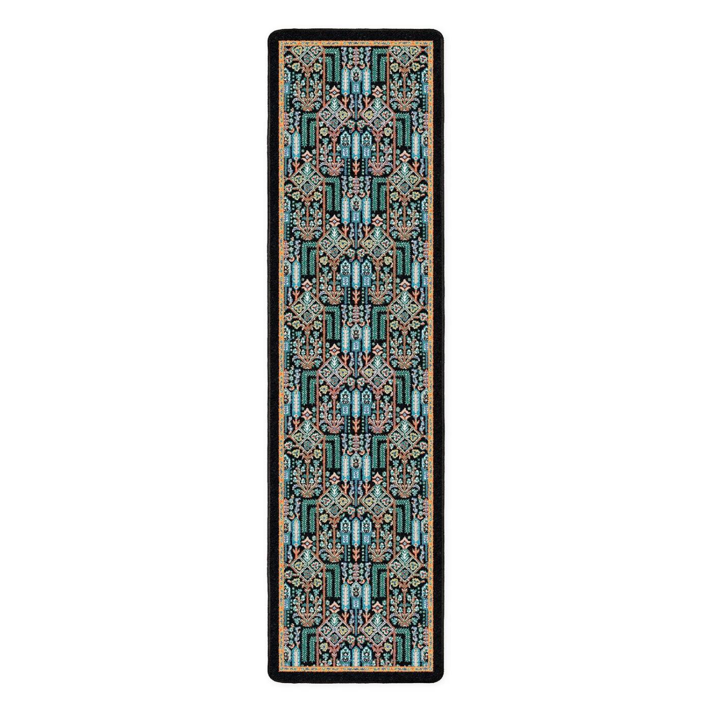 Ovaj tepih Mount Joy EnduraStran u narodnom stilu ima nijanse dragog kamenja koje se ističu na crnoj pozadini. Savršen je spoj elegancije i izdržljivosti, prikladan za svaki dom, od modernog do tradicionalnog.