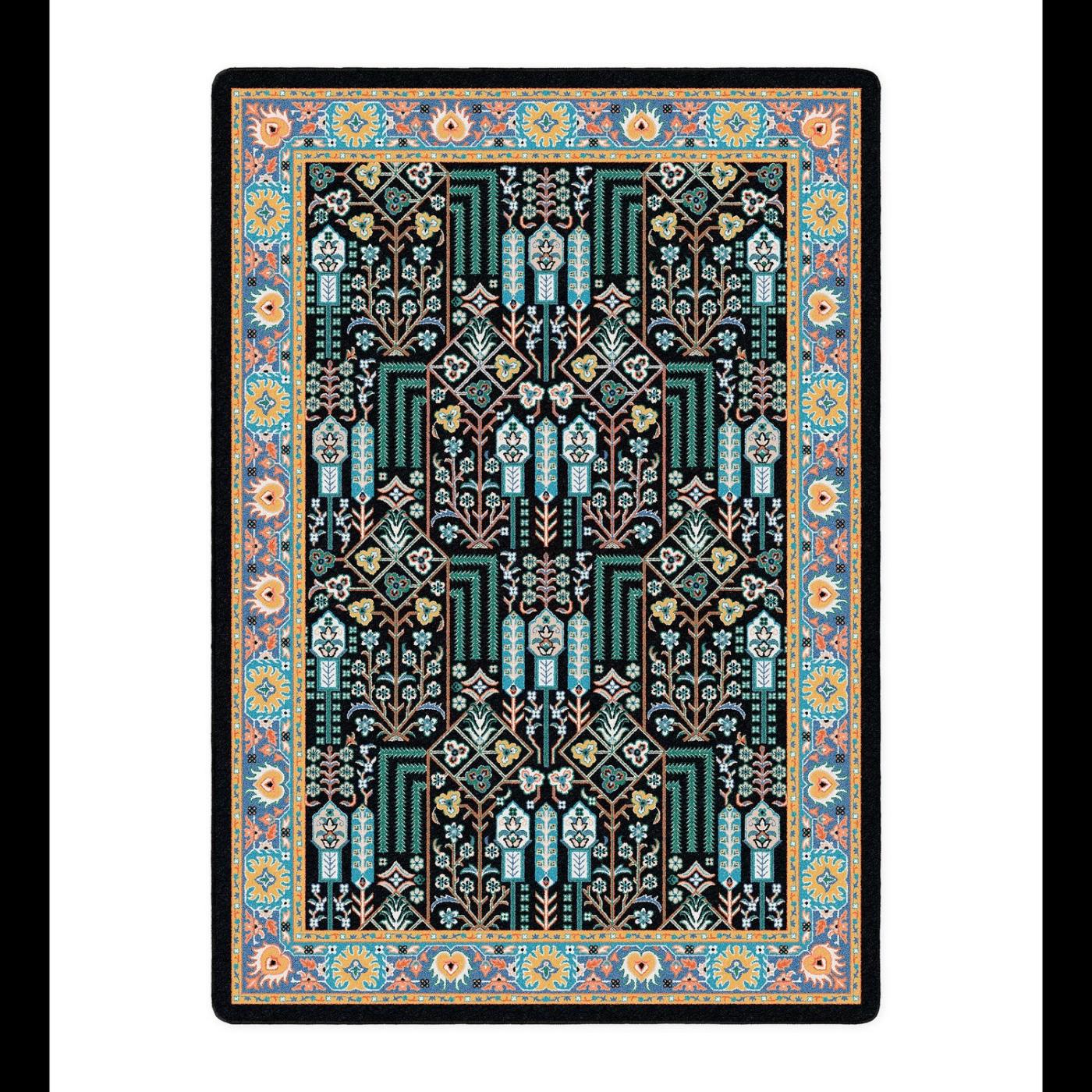 Ovaj tepih Mount Joy EnduraStran u narodnom stilu ima nijanse dragog kamenja koje se ističu na crnoj pozadini. Savršen je spoj elegancije i izdržljivosti, prikladan za svaki dom, od modernog do tradicionalnog.