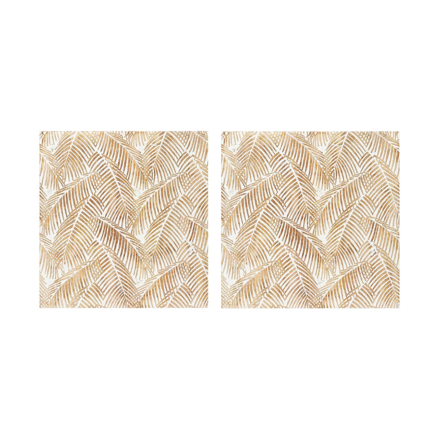 Ovaj duo rezbarenih panela s izgledom drva, obješenih zajedno ili pojedinačno, sadrži palmino lišće utrljano bojom koja se nježno briše kako bi se dobio efekt ostarjelog, bijelog pranja. S privlačnošću pronađene umjetnosti, ovaj obalni, boemski komad nadopunjuje širok raspon stilova.
