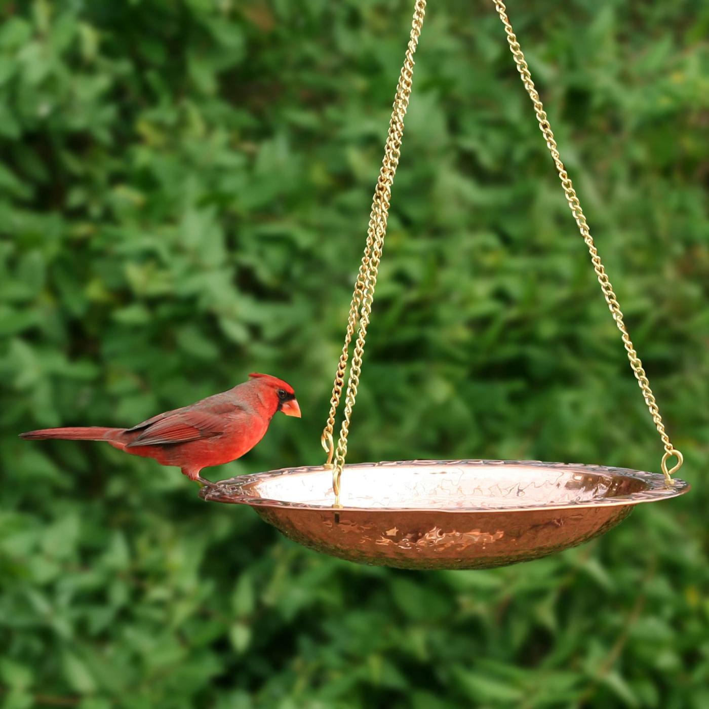 Vanjske kupke za ptice | Viseća kupka za ptice Plow & Hearth od čistog bakra na mesinganom lancu duljine 40 cm s kukom