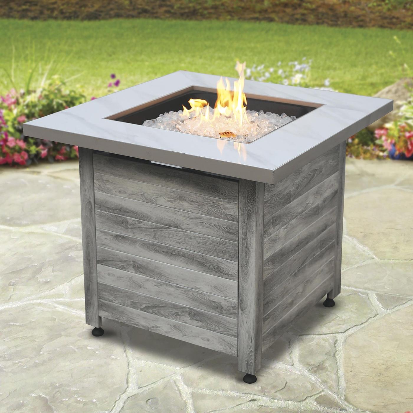 - Vanjske vatrene jame za život | Plinska vatrena jama na propan Plow & Hearth Tidewater s umetkom za stol, staklom za kamin i poklopcem