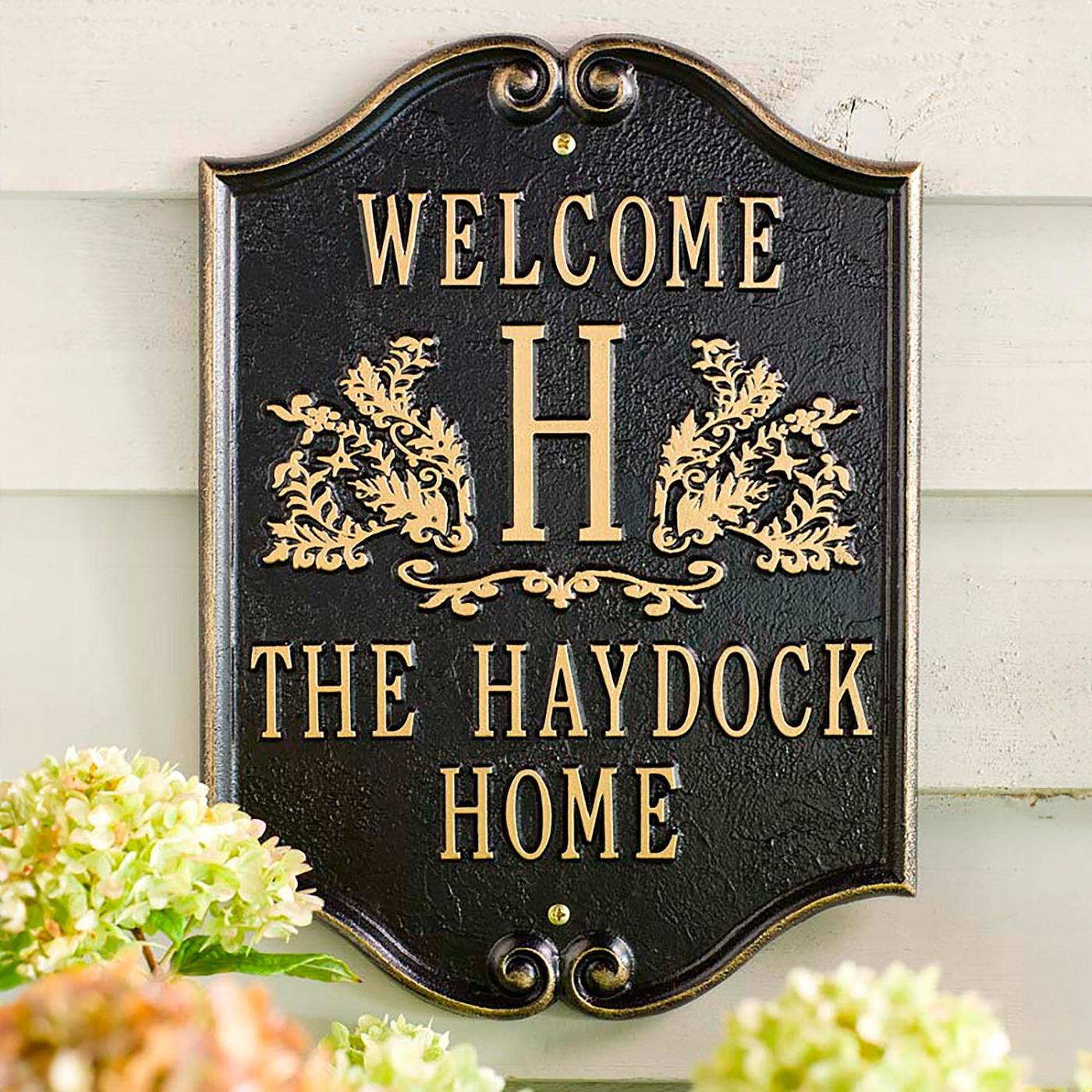 Vanjski adresni znakovi i zidne pločice za život | Plug & Hearth lijevano aluminijska monogramska pločica dobrodošlice s monogramom