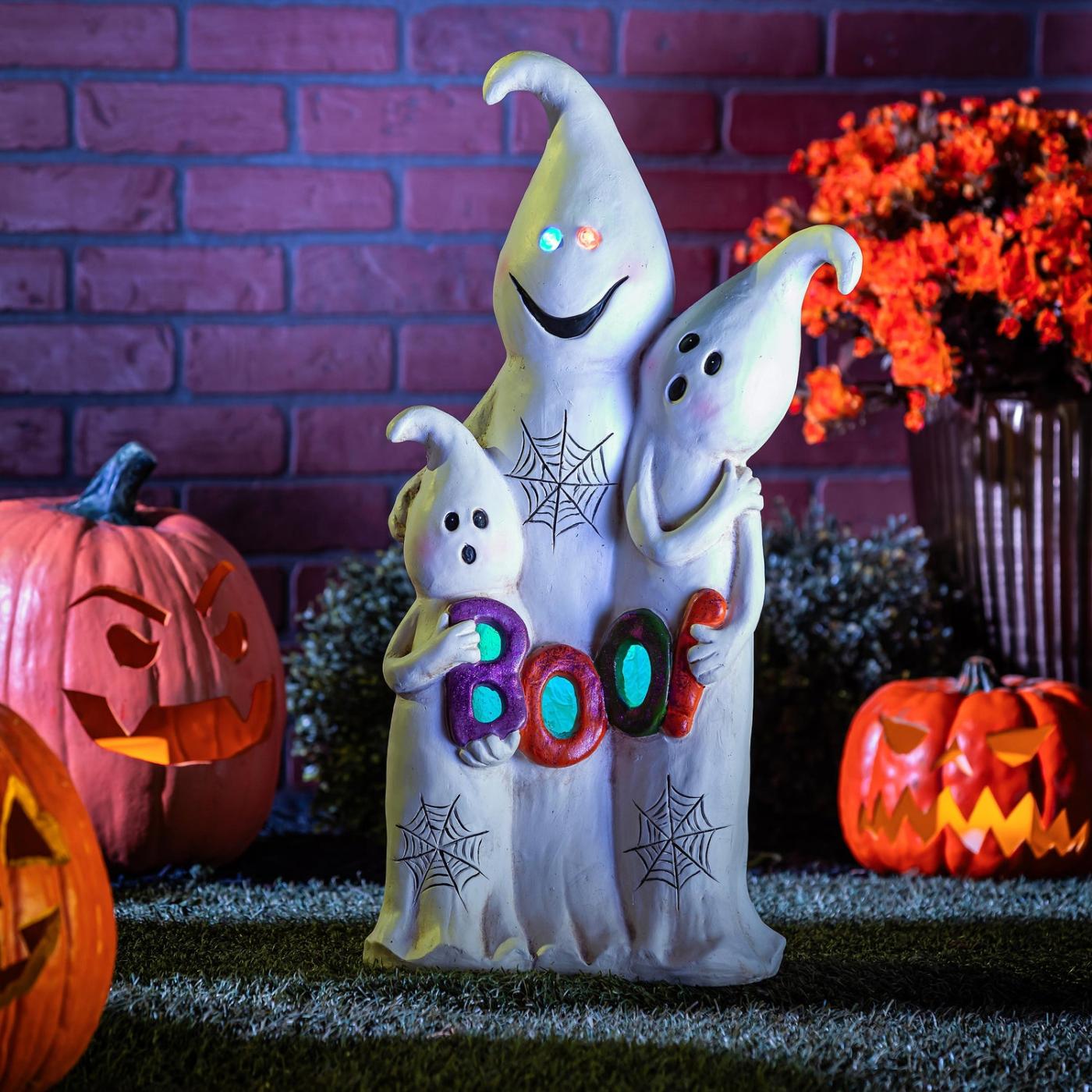 Proslavite sezonu s ovim prekrasno sablasnim kipom, savršenim dodatkom svakom dekoru za Noć vještica. Izrađen sa zamršenim detaljima i LED svjetlima, ovaj kip obuhvaća bit jeseni i dodaje razigranu vibru vrtu koju će obožavati oni koji traže slatkiše za Noć vještica. Idealan za vanjski ili unutarnji prikaz, sigurno će postati omiljena središnja točka svake jesenske svečanosti. Ovaj kip izvrstan je poklon za svakoga tko voli ukrašavanje za ovo doba godine. Potrebne su tri AAA baterije, nisu uključene.